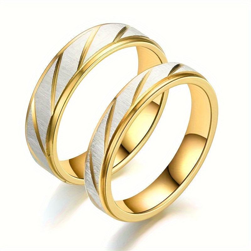 These romantic couple's rings are made of durable stainless steel with a textured wavy edge design. Perfect for weddings, engagements, and anniversaries.