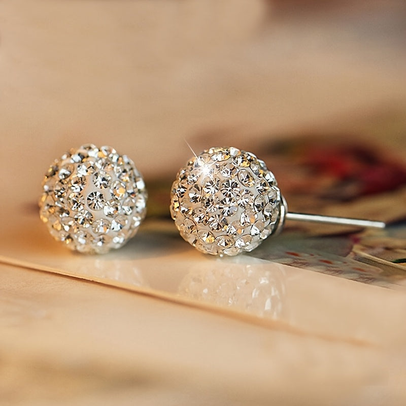 Shine bright with this set of 2 full rhinestone stud earrings featuring disco ball design. Perfect for adding glam to any outfit.