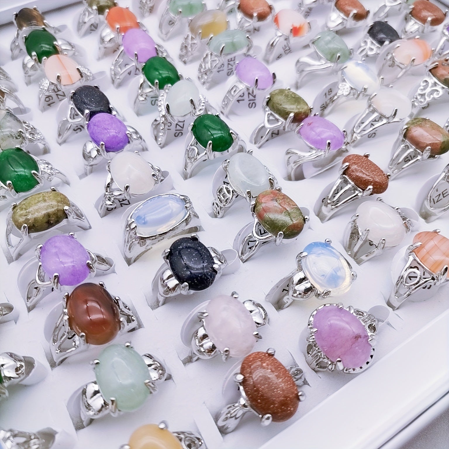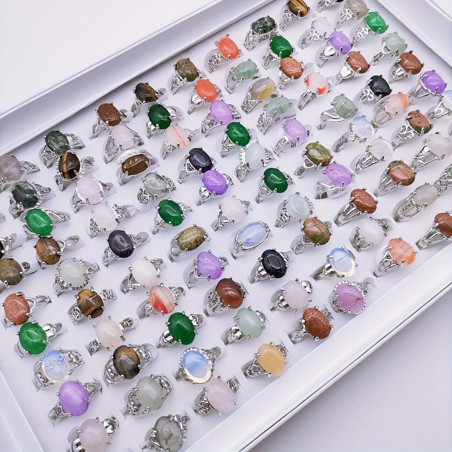 Elevate your style with this boho-inspired finger ring set featuring inlaid oval cut faux gems. Perfect for daily wear and adding a touch of elegance to your look.