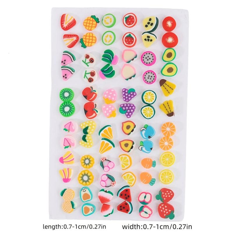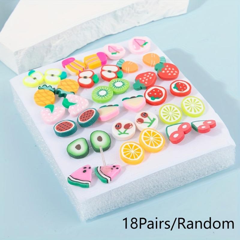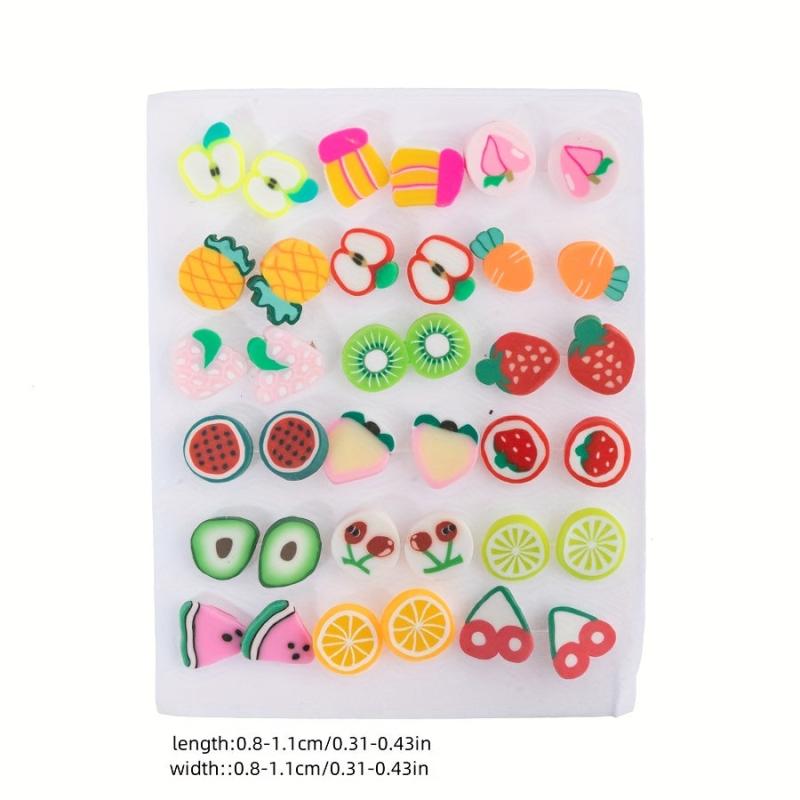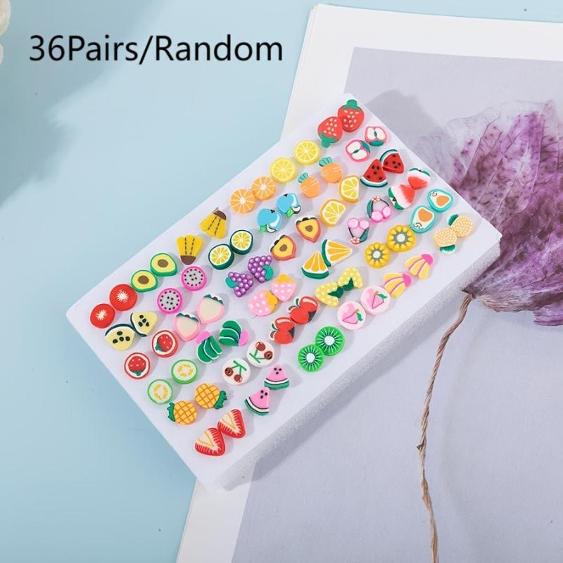 This set includes 36 pairs of women's fruit stud earrings in a Y2K style. Made from resin material with plastic ear needles, these earrings are perfect for gift giving, parties, and all seasons.