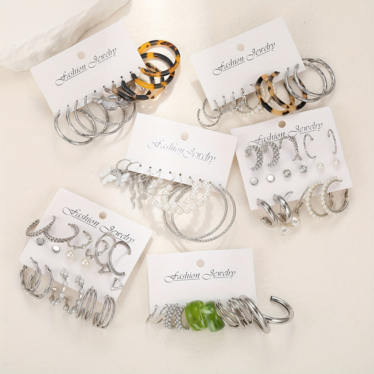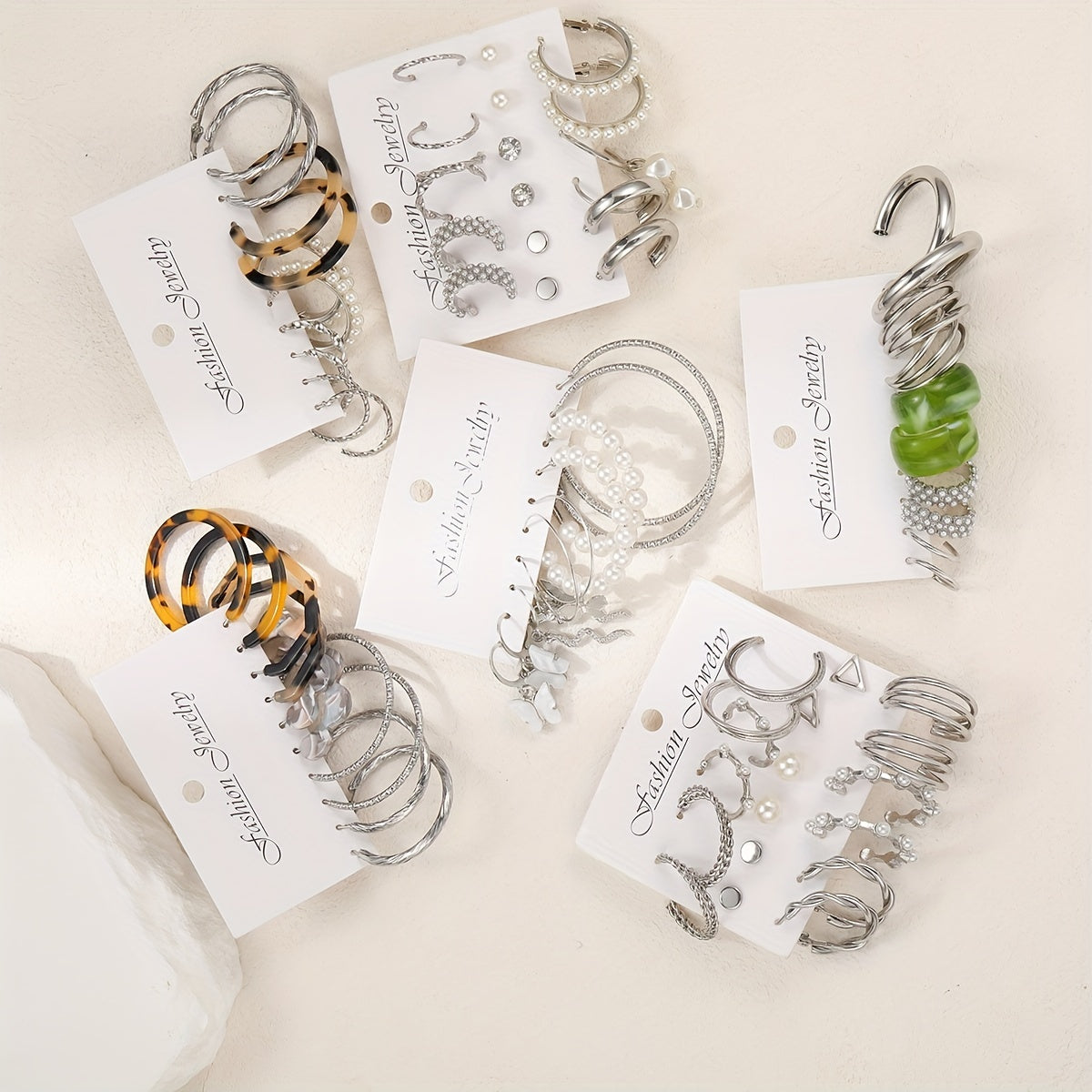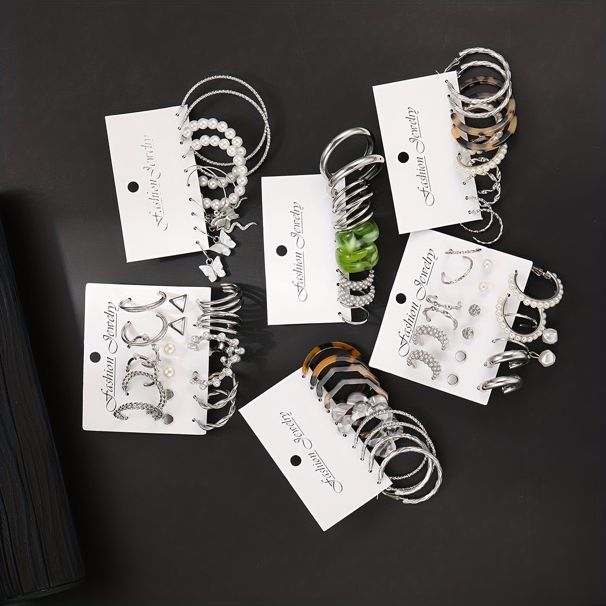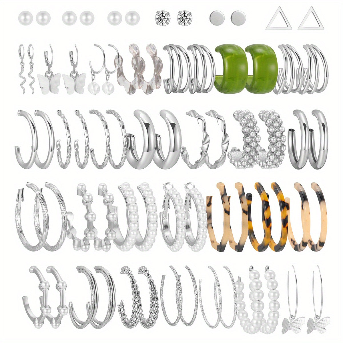 Enhance your vocation style with this elegant 38-piece earring set that features a variety of designs including butterfly and faux pearl details.