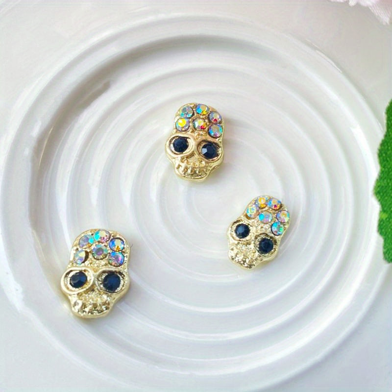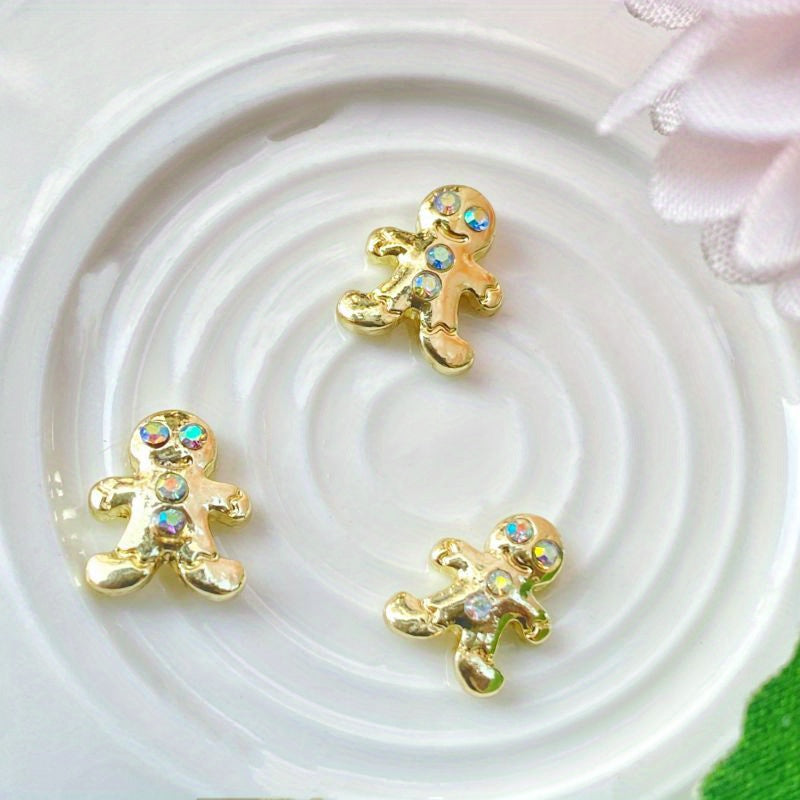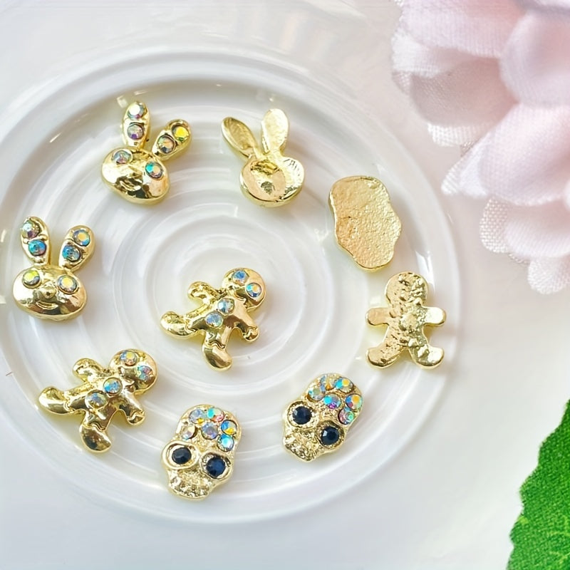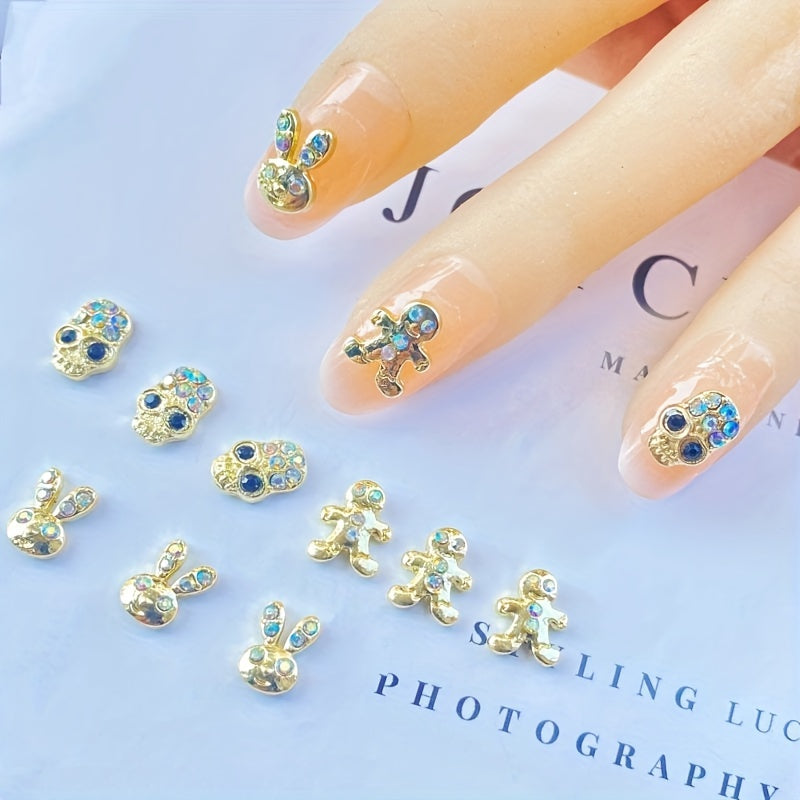Add a touch of sparkle and personality to your nail art with these 3 rhinestone-decorated charms. Includes a cute rabbit, a mysterious head skull, and a festive gingerbread man.