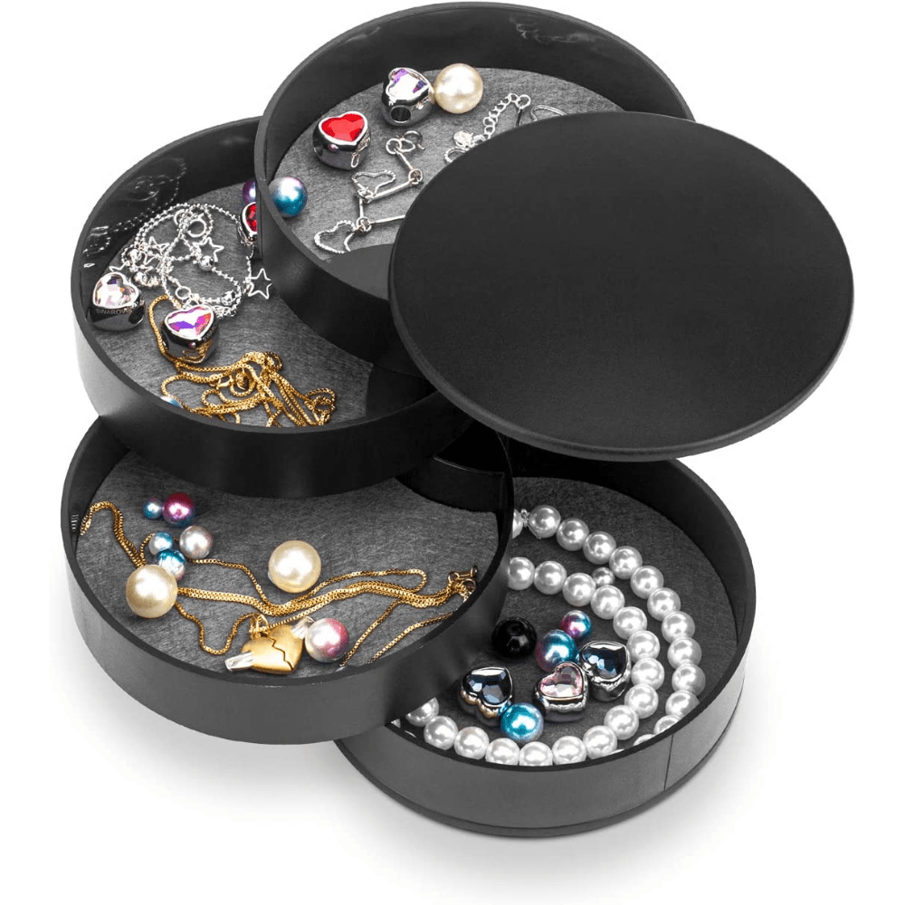 This jewelry storage box features 4 layers for easy access to your accessories. Keep your jewelry organized and within reach with this versatile storage tray.