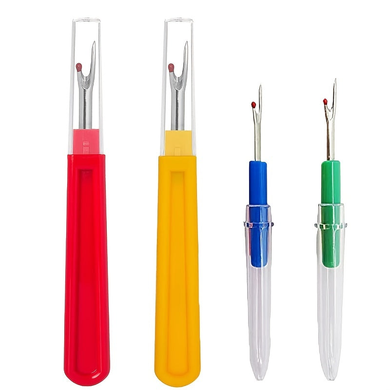 This set includes 4 seam rippers for your sewing and embroidery needs. Ideal for removing threads and stitches with precision and ease.