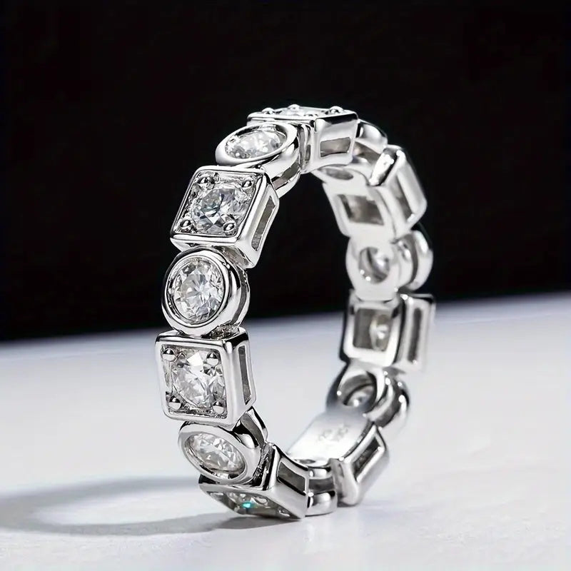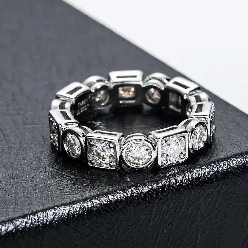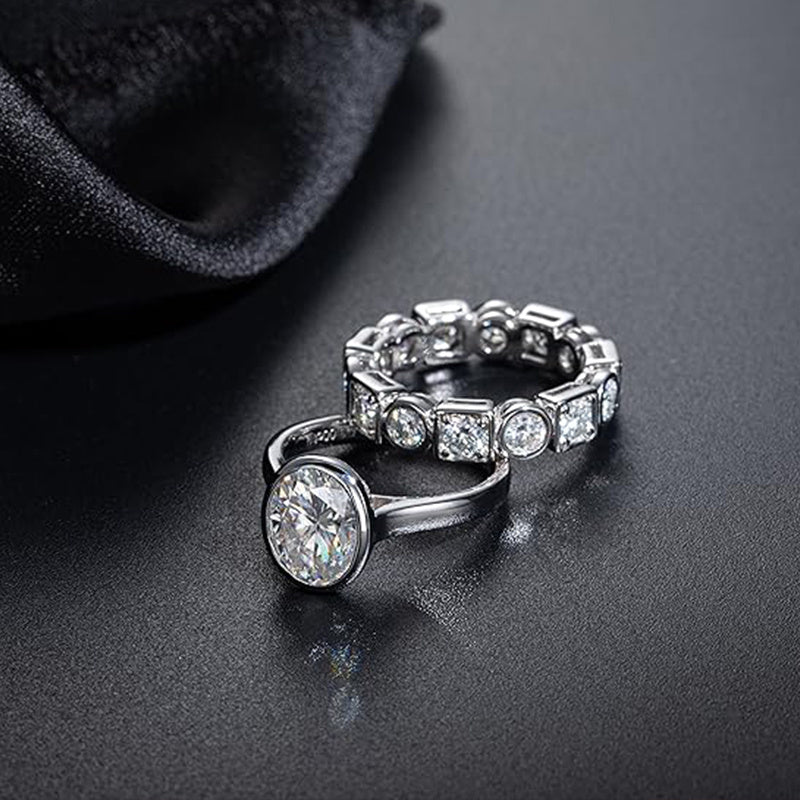 Make a promise of eternal love with this stunning wedding ring set featuring a 5 carat Moissanite stone set in 18K golden plating on S925 silver.
