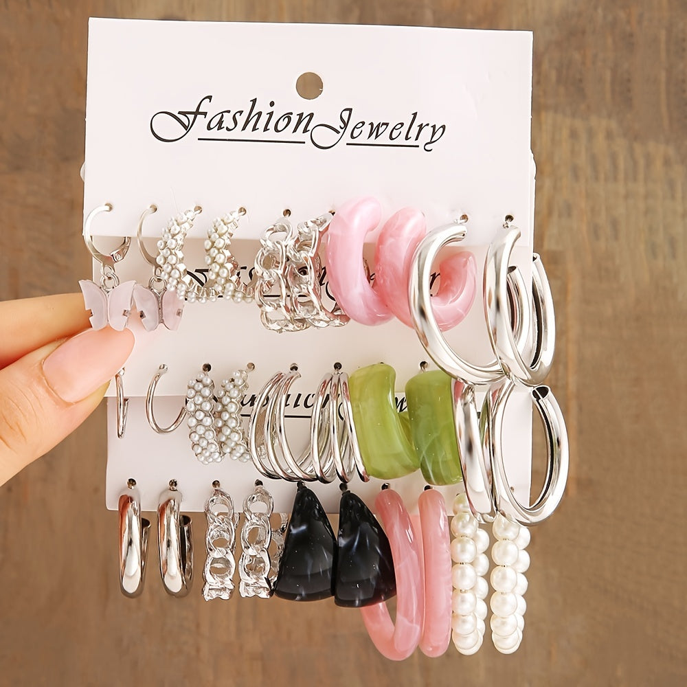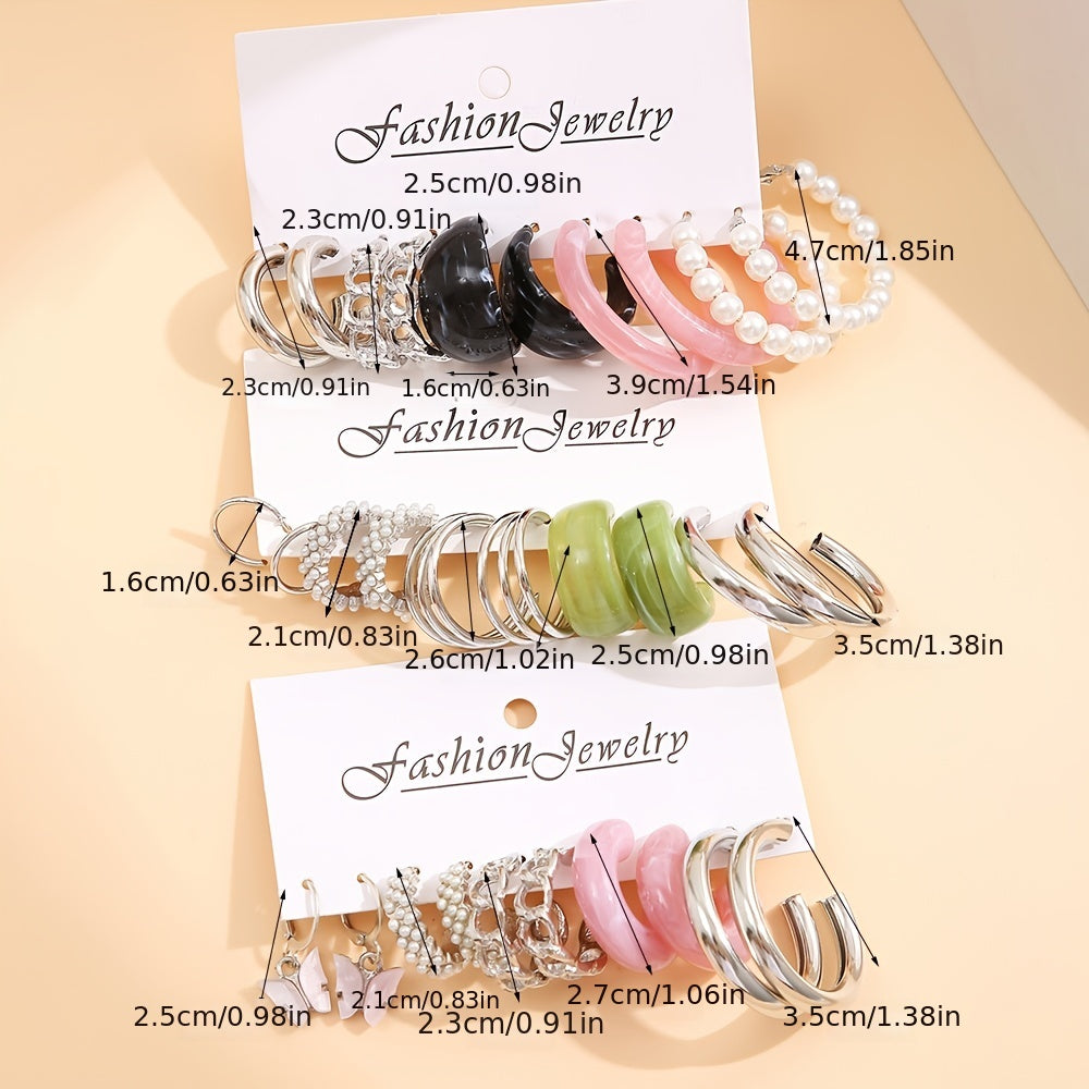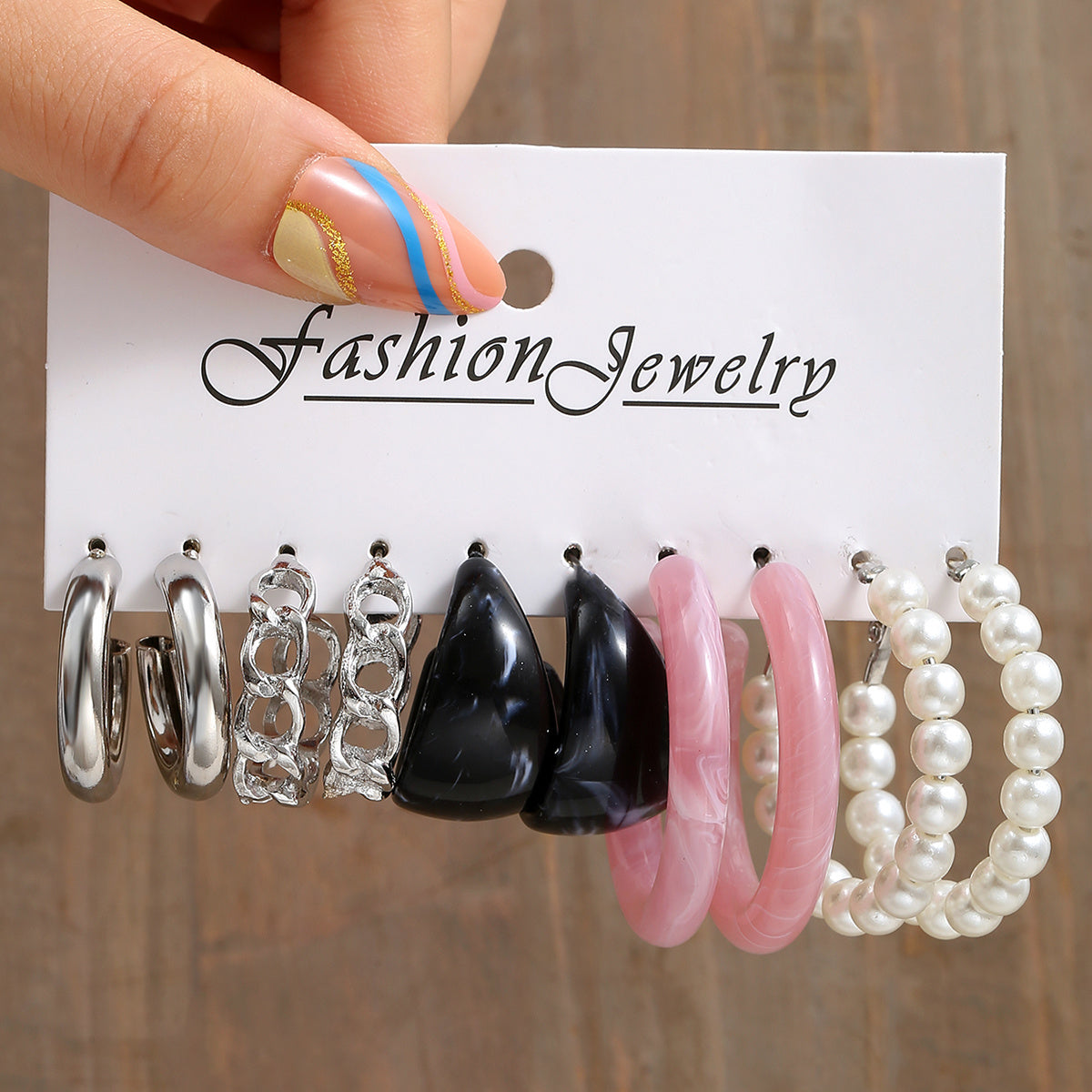 This set of 5 pairs of hoop earrings features a vintage design with faux pearl accents. Perfect for women and girls who love a touch of elegance.