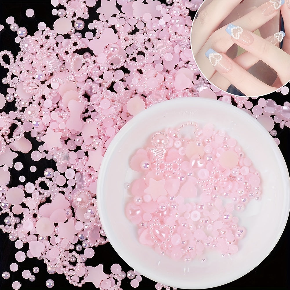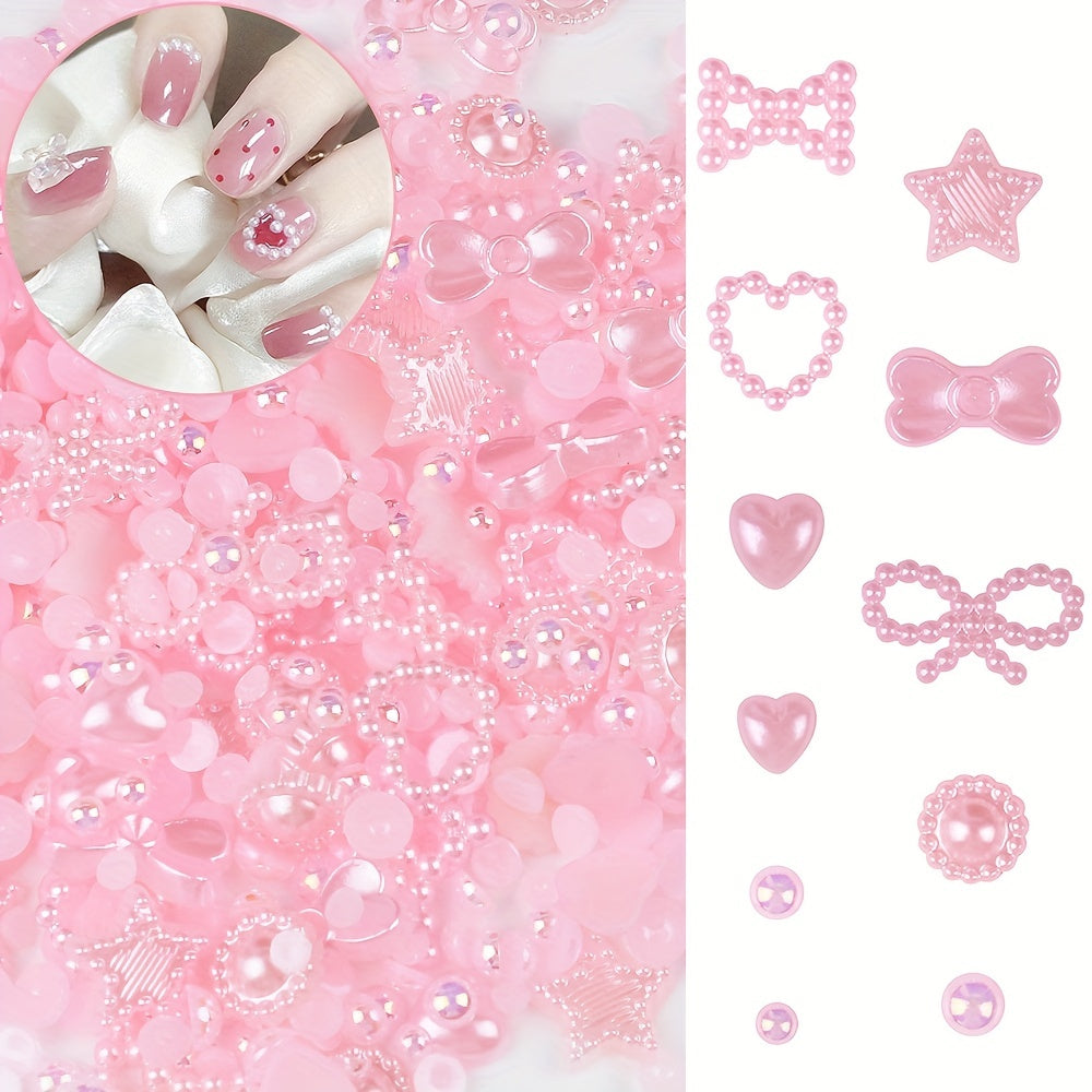 550Pcs Pink Pearly Nail Decoration Mixed Styles 3D Nail Art Charms For Nail Art