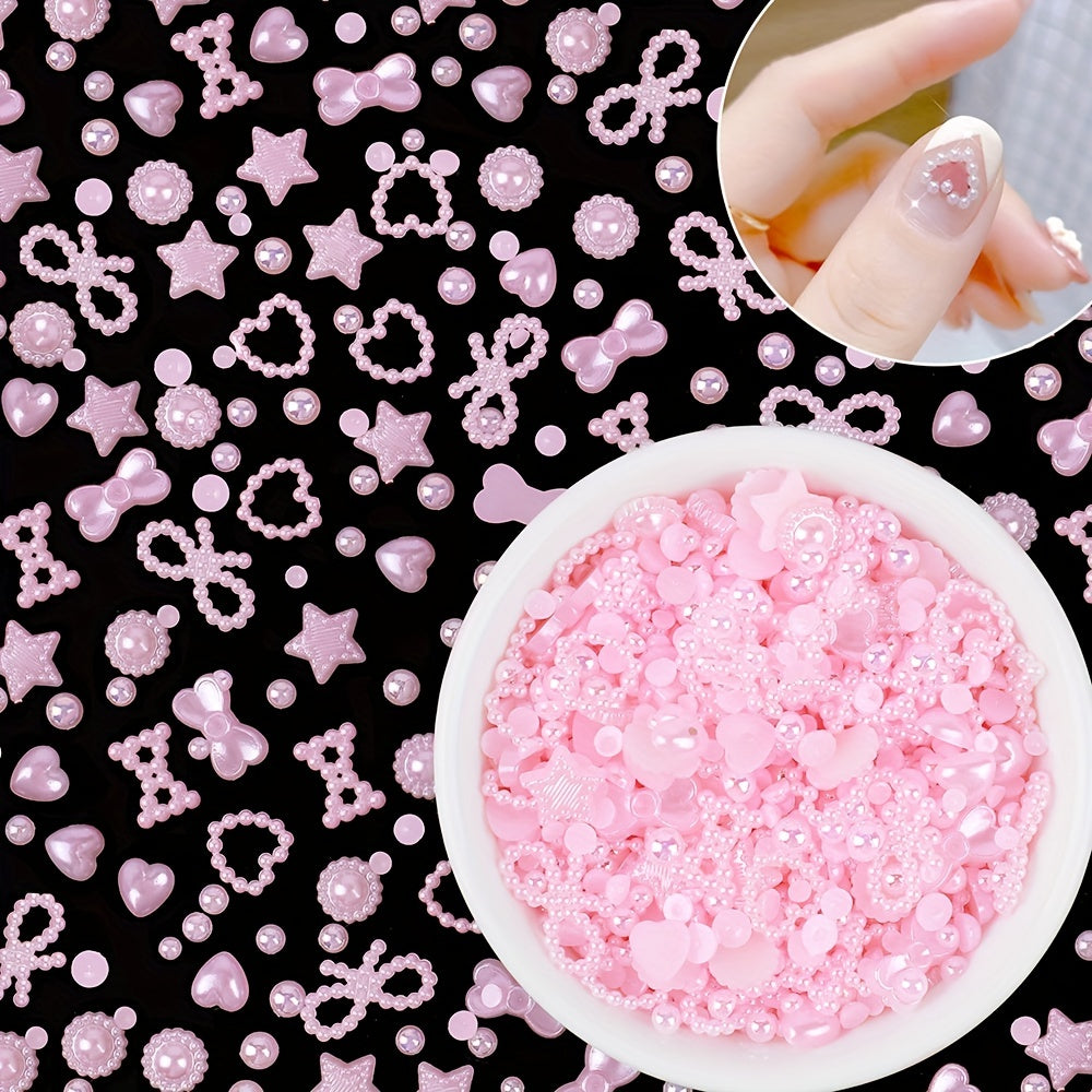 • Set of 550 pink pearly heart, star, and bowknot shaped nail charms