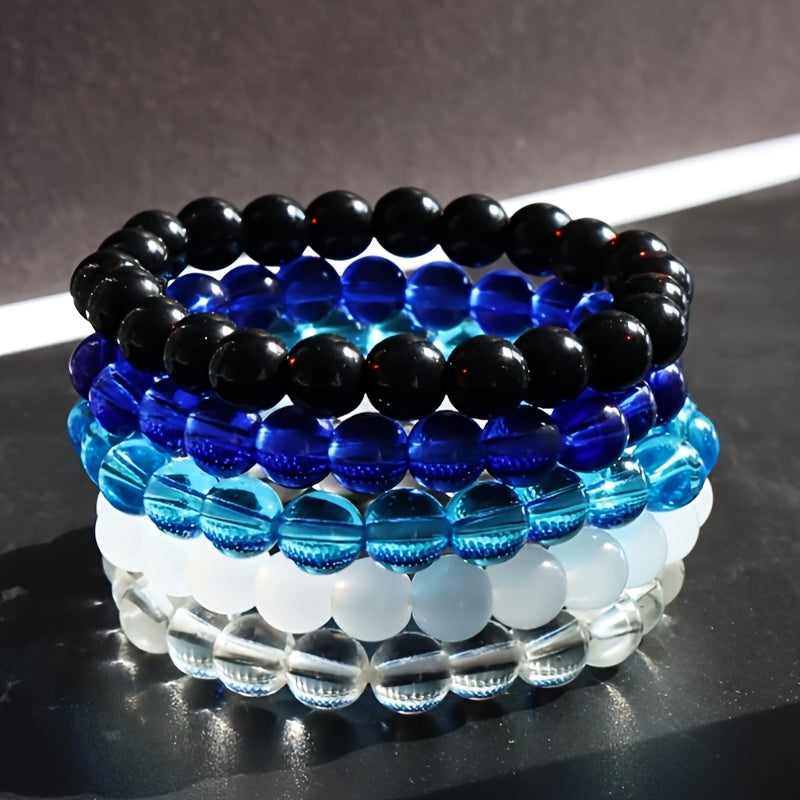 Enhance your style with this set of 5 minimalist beaded bracelets designed for men. These fashionable accessories are perfect for everyday wear.