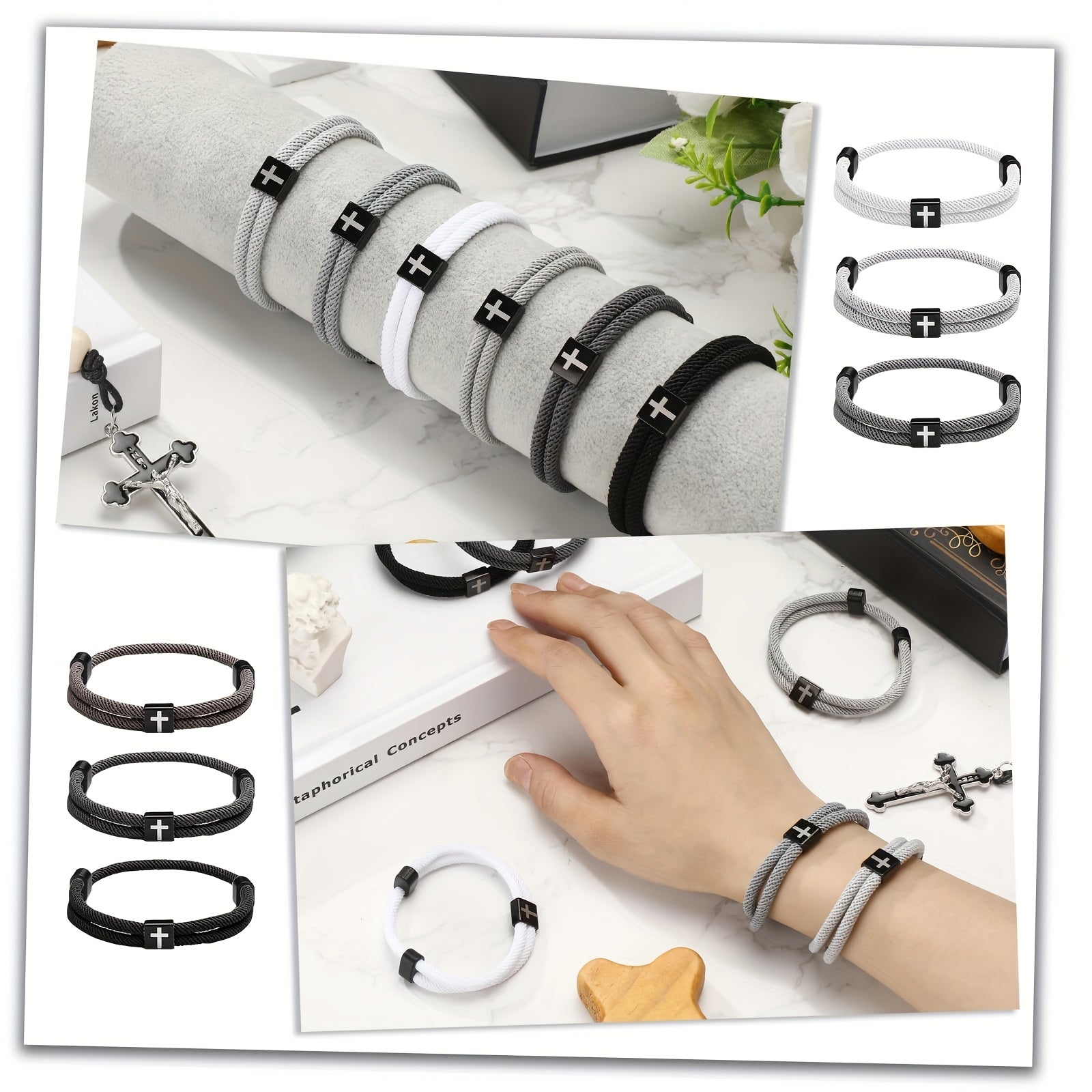 This set includes 6 braided cross bracelets suitable for daily wear. Each bracelet features an adjustable cord for a comfortable fit.