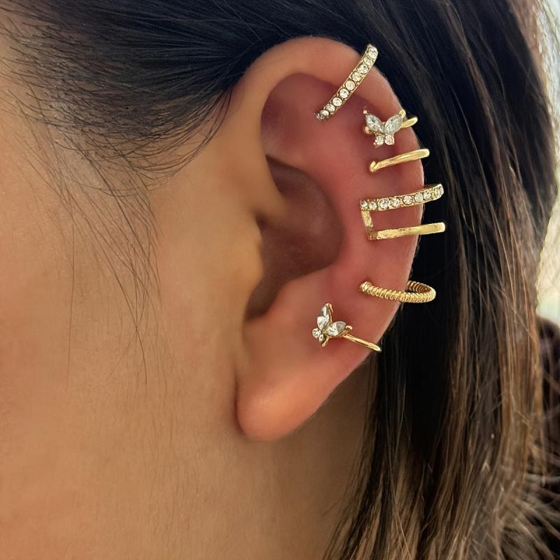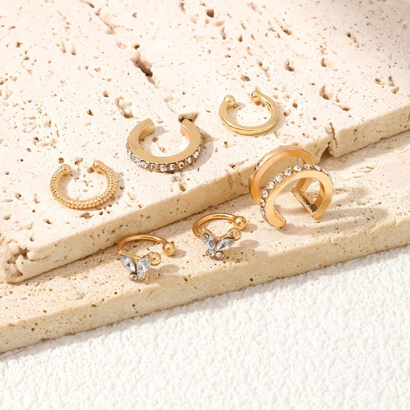 These trendy butterfly clip earrings are perfect for daily wear and require no piercing. The set includes 6 pieces in various designs.