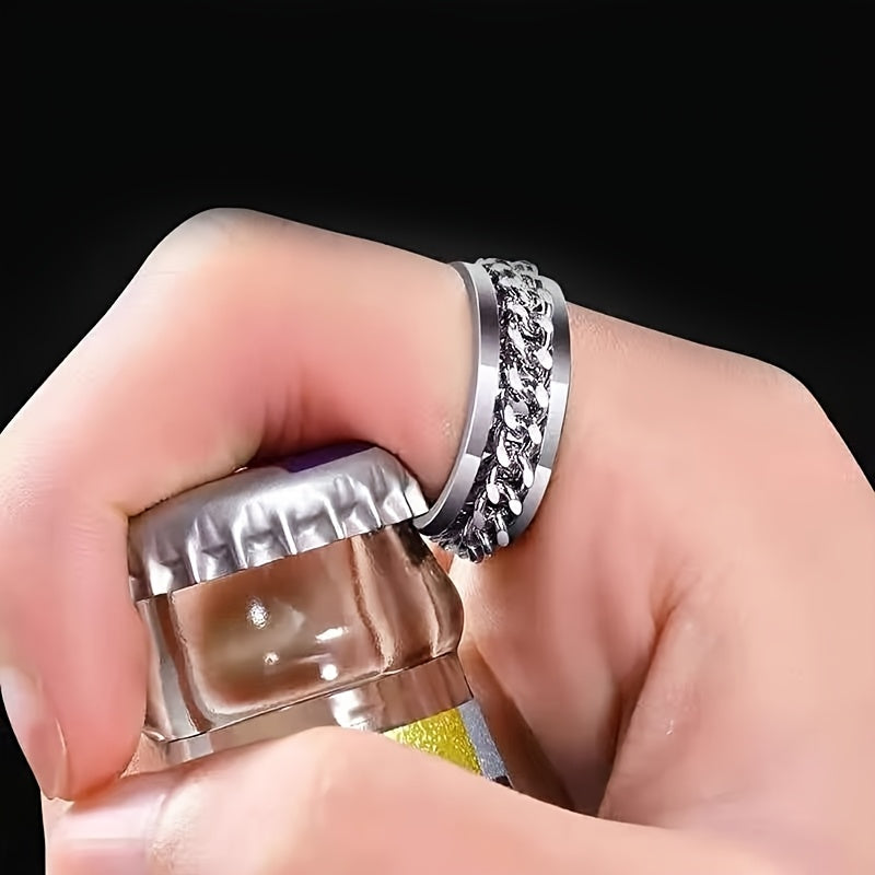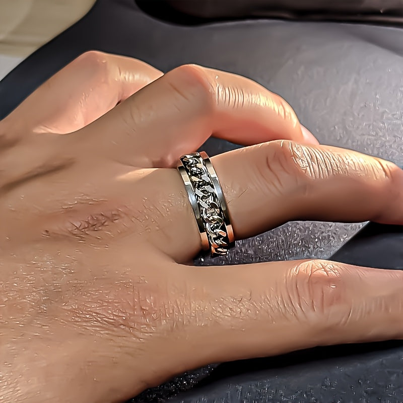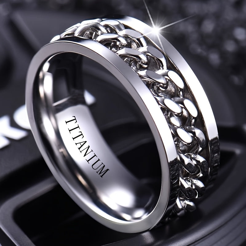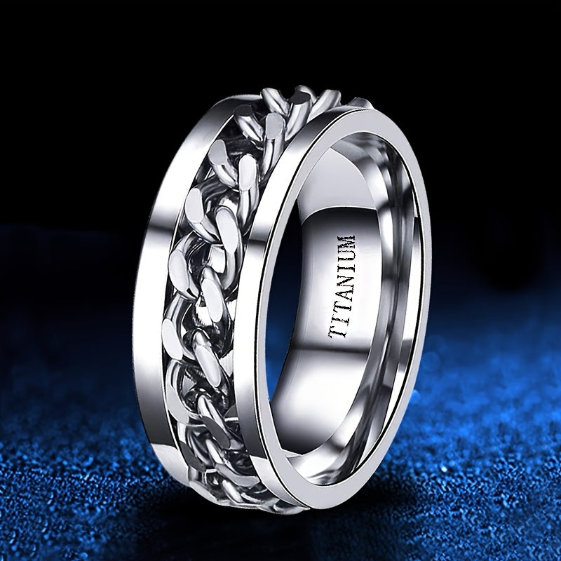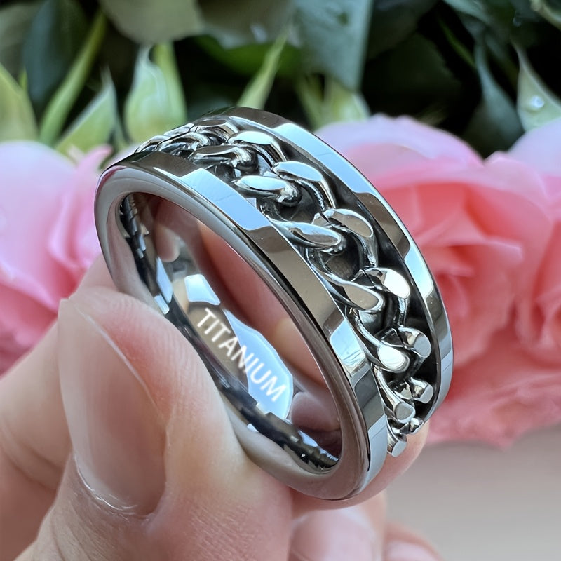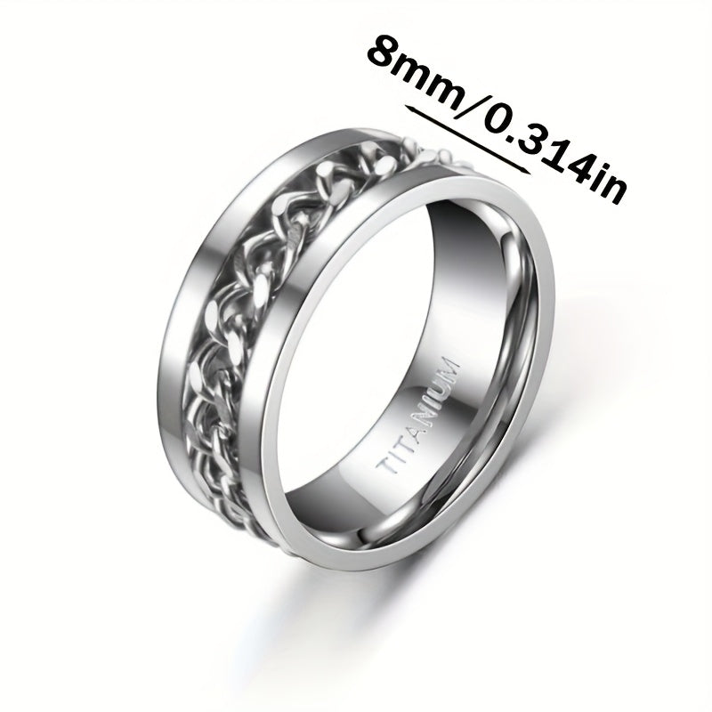 This 8mm wide titanium steel ring is a stylish stress relief band with intricate design, making it an ideal gift for Father's Day, Mardi Gras, or casual wear. The ring is durable and comfortable, perfect for everyday use.