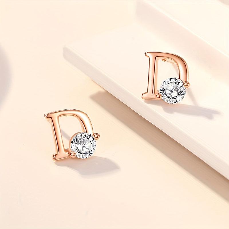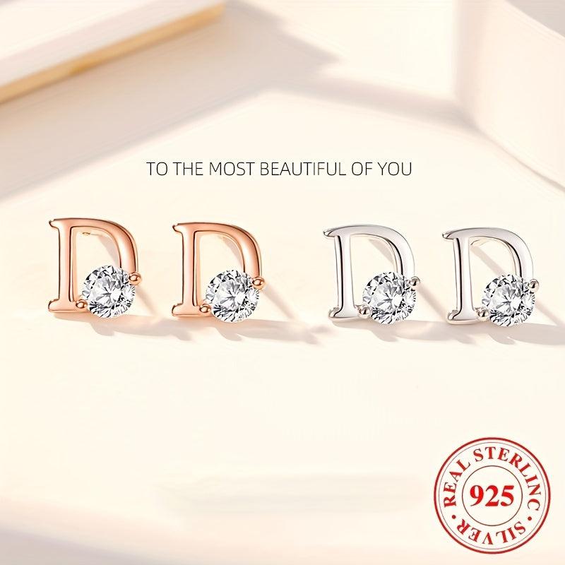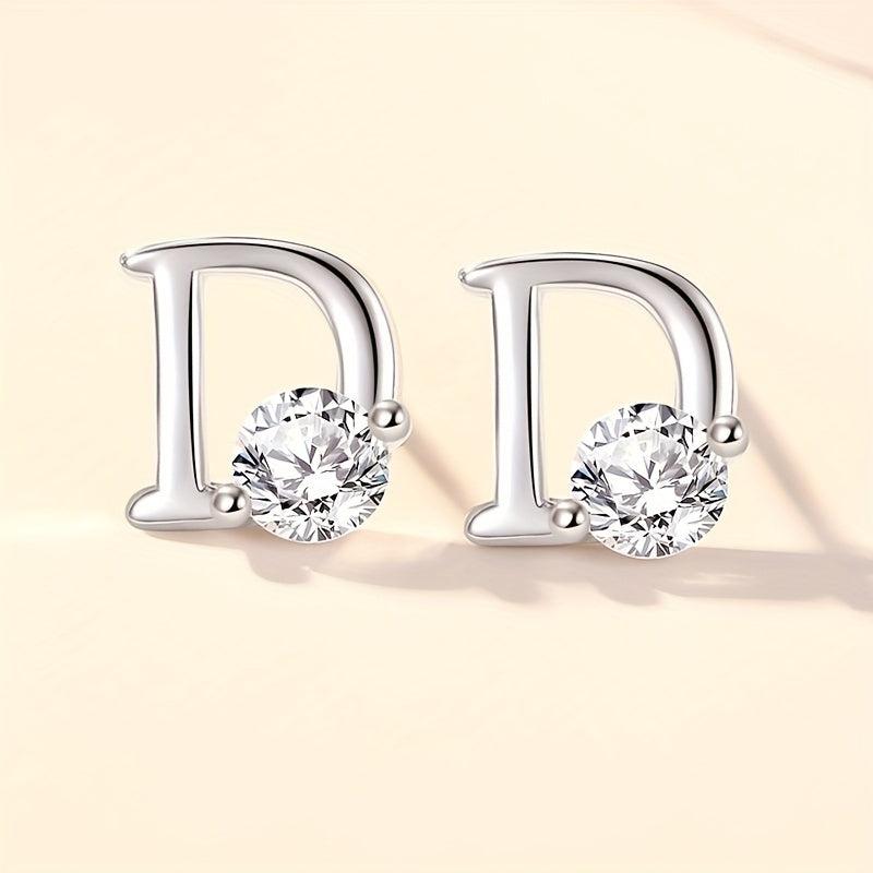 925 Silberbrief D Ohrringe mit Zirkonia, High-End-Modeschmuck für Frauen