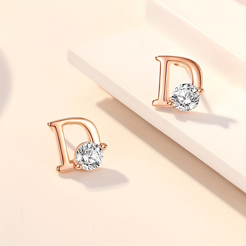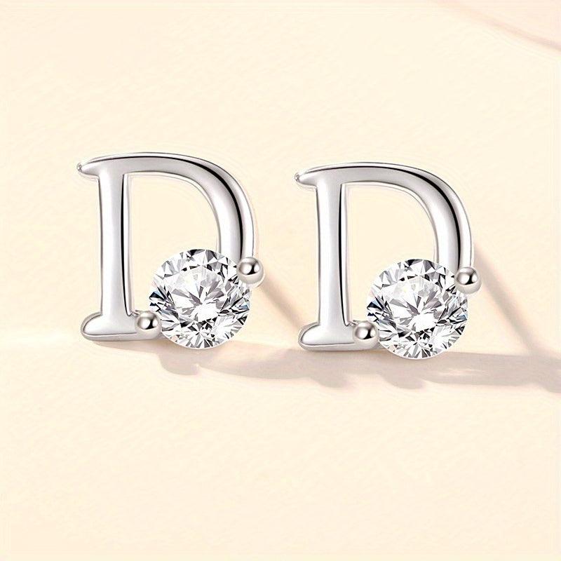 Elegante und stilvolle 925 reine silberne Ohrringe mit dem Buchstaben D -Design mit Zirkonia -Akzenten. Ein perfektes Accessoire für jedes Outfit.