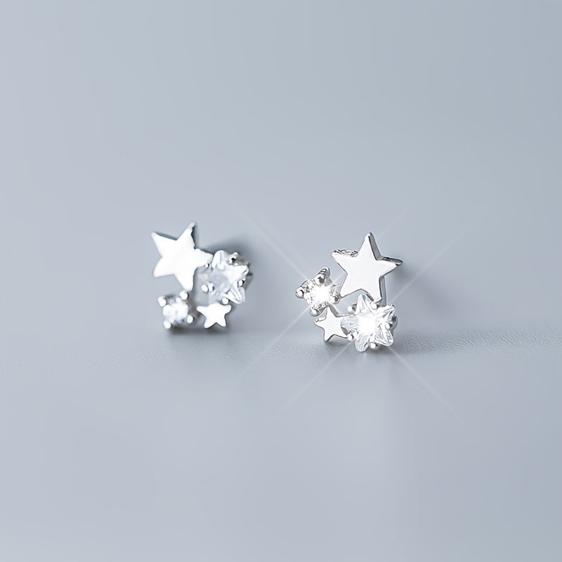 Elegante 925 reine silberne Ohrstollen mit fünfteltem Sterndesign, geeignet für den Alltag. Ideales Geschenk für Mädchen.