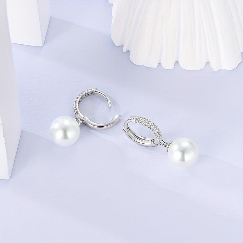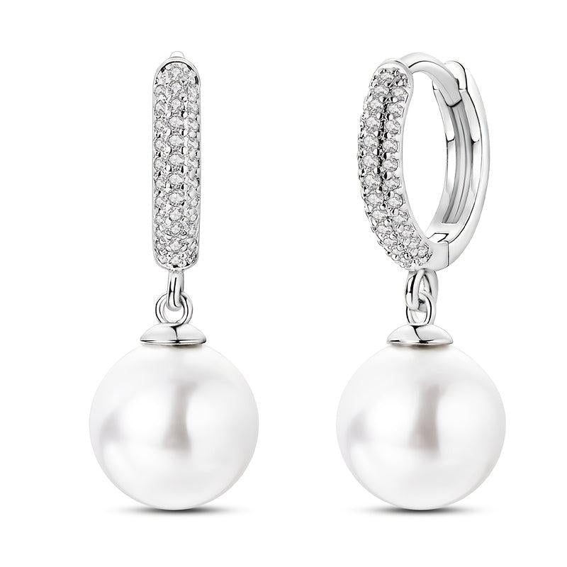 Stunning pair of 925 silver earrings with classic round Australian pearls. Perfect for engagement parties, weddings, and as a jewelry gift.