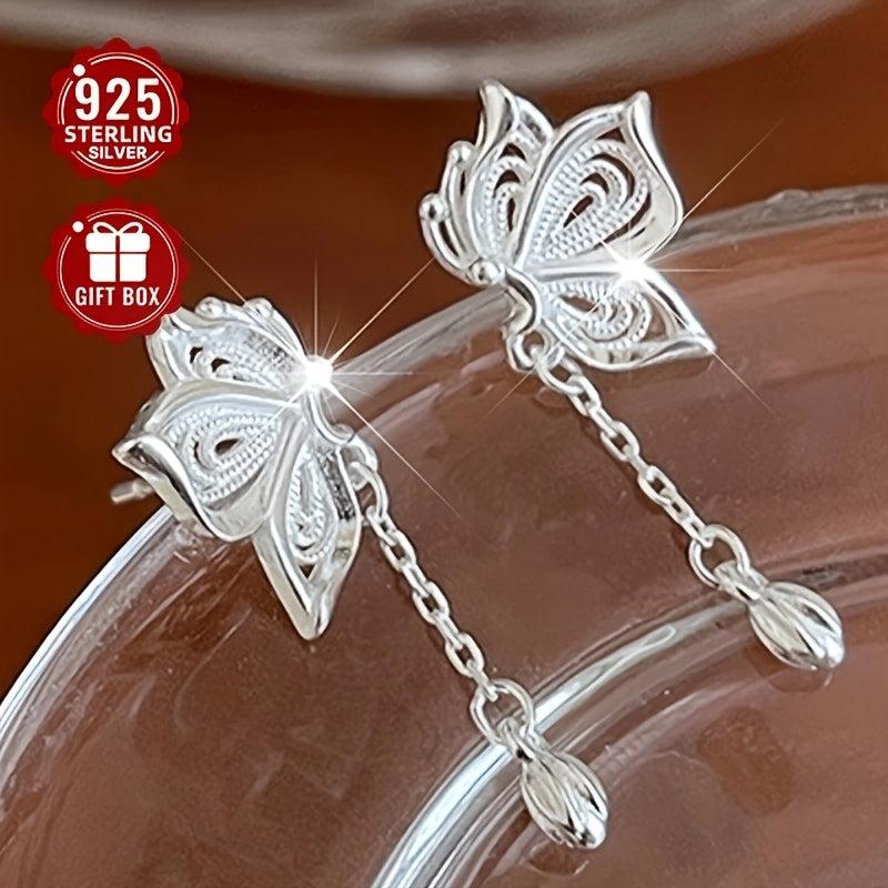 These elegant earrings feature 925 silver butterflies and sweet hollow design with fresh lotus tassel pendants. Perfect for parties and gatherings, a great gift for girlfriends.