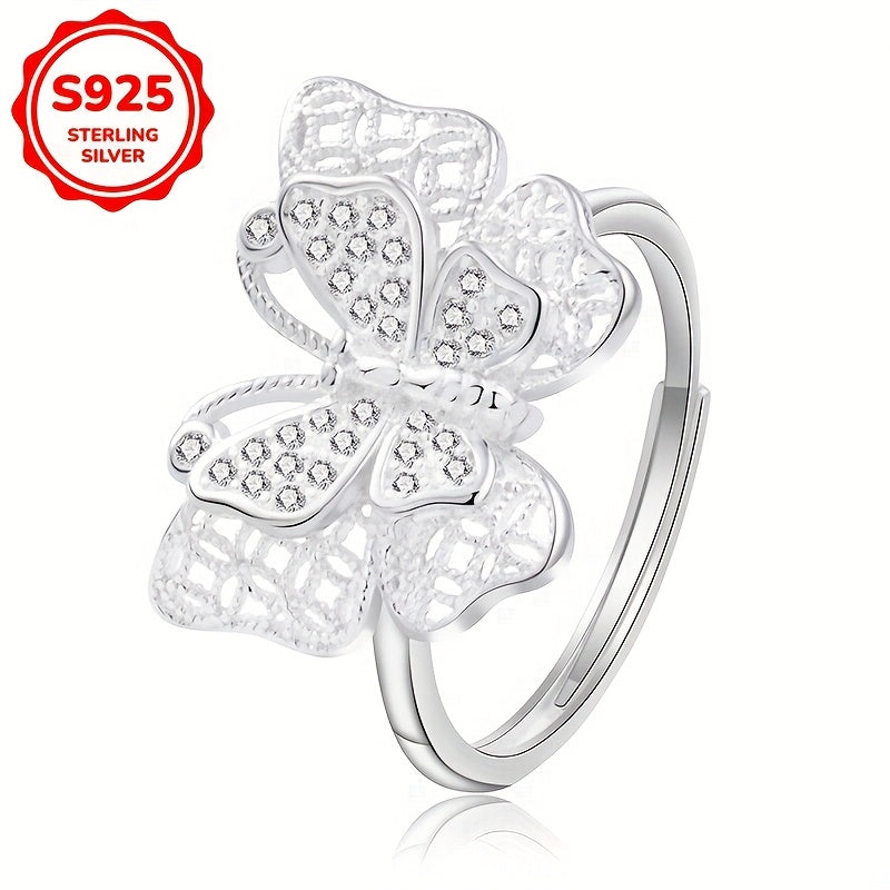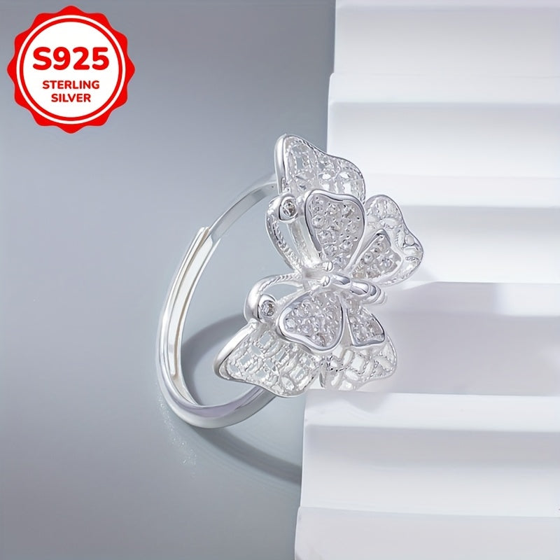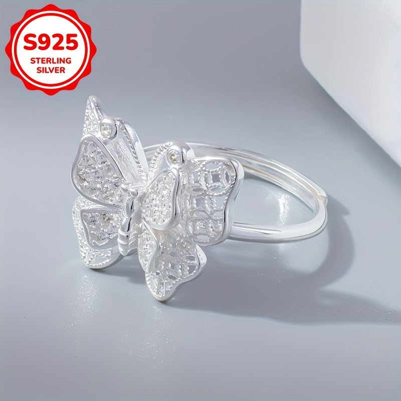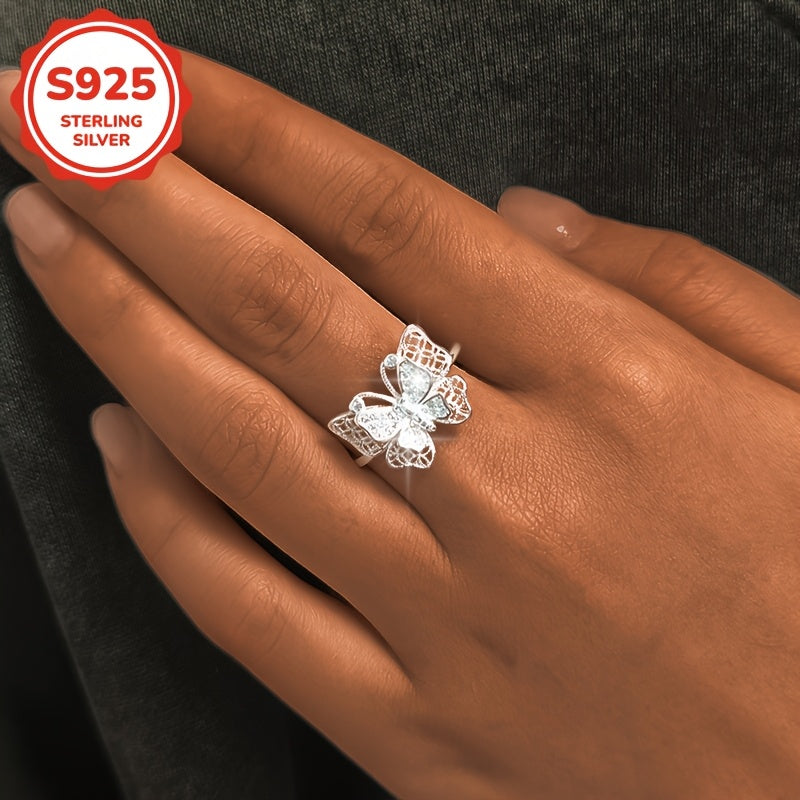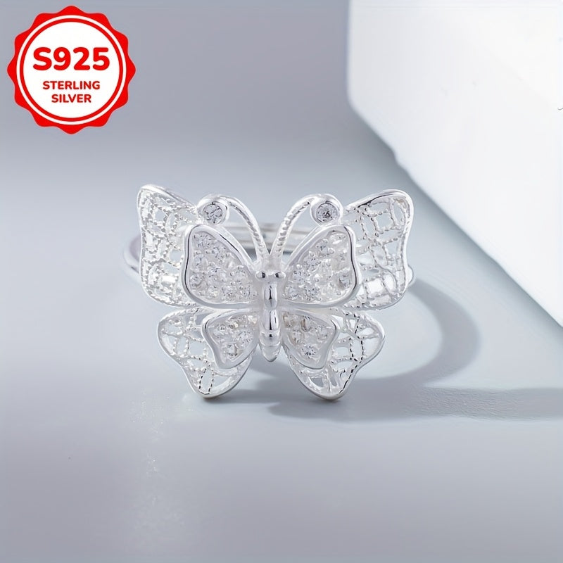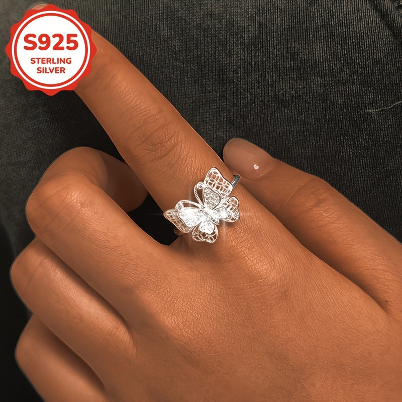 925 Silver Butterfly Wide Band Ring with Synthetic Zirconia