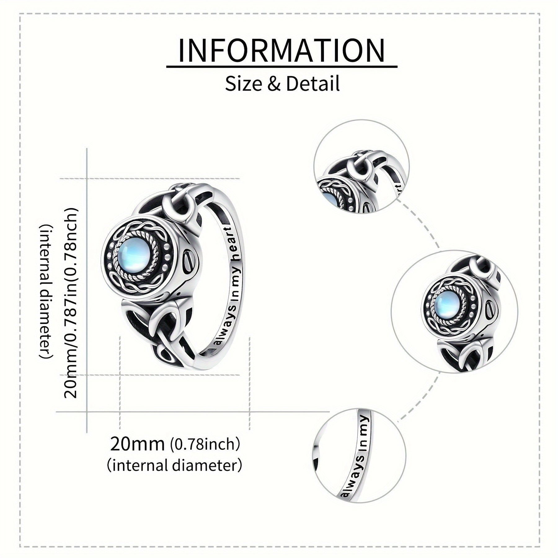 Beautiful urn ring crafted from 925 sterling silver with synthetic moonstone, perfect for keeping ashes of loved ones. Size O.