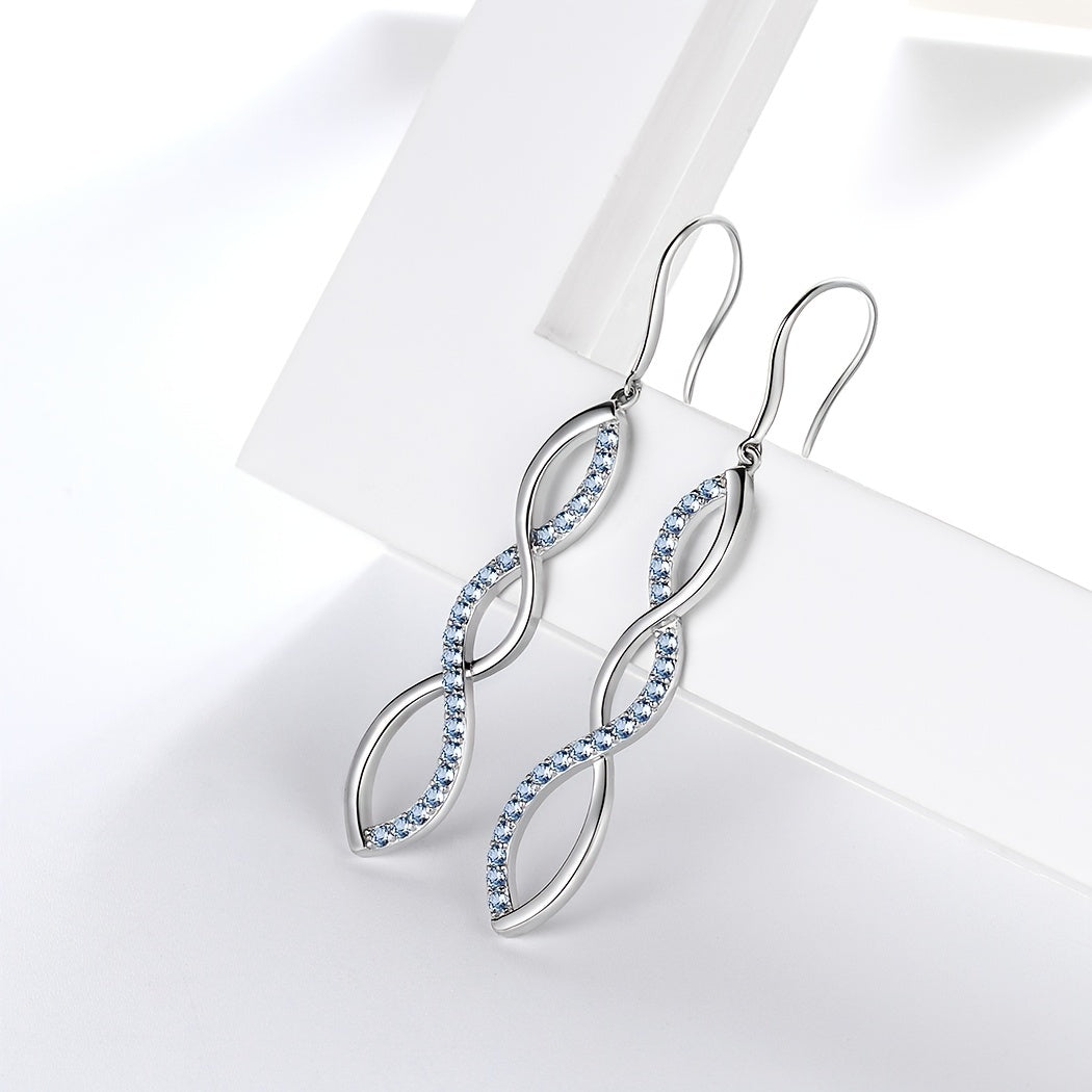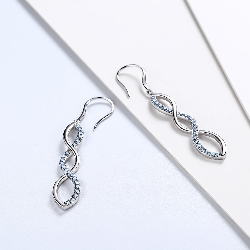Enhance your style with these stunning 925 sterling silver earrings featuring a crystal spiral design. Each earring is adorned with a birthstone infinity stone, making them both elegant and meaningful.