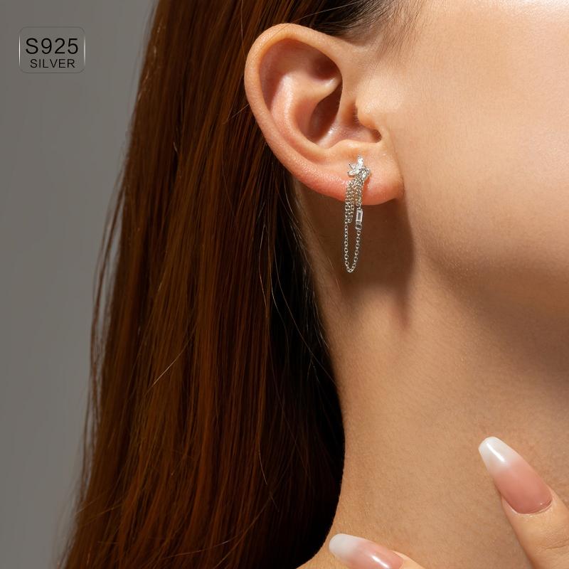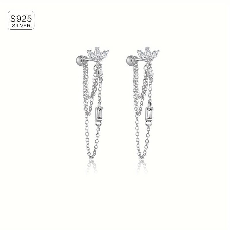 These stunning 925 sterling silver stud earrings feature sparkling cubic zirconia stones. Perfect for dates, parties, and everyday glamour. The earrings are lightweight at 1.23g and come with a chain for versatile wear. Ideal gift for women.