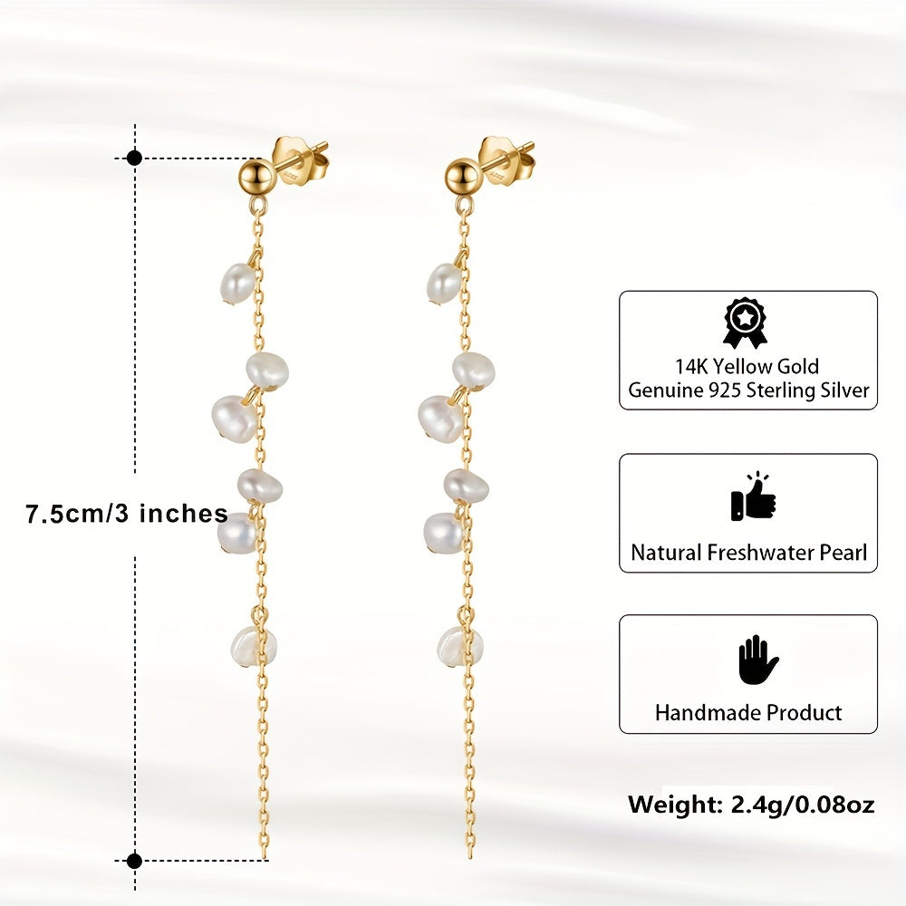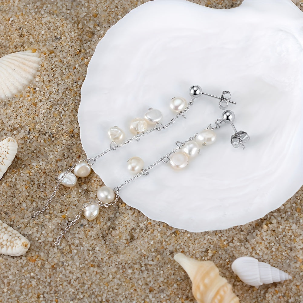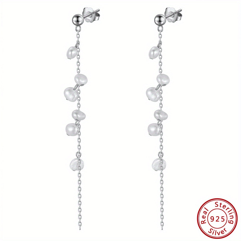 925 Silver Dangle Earrings with Pearl Decor Chain