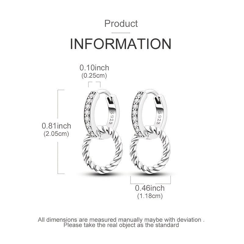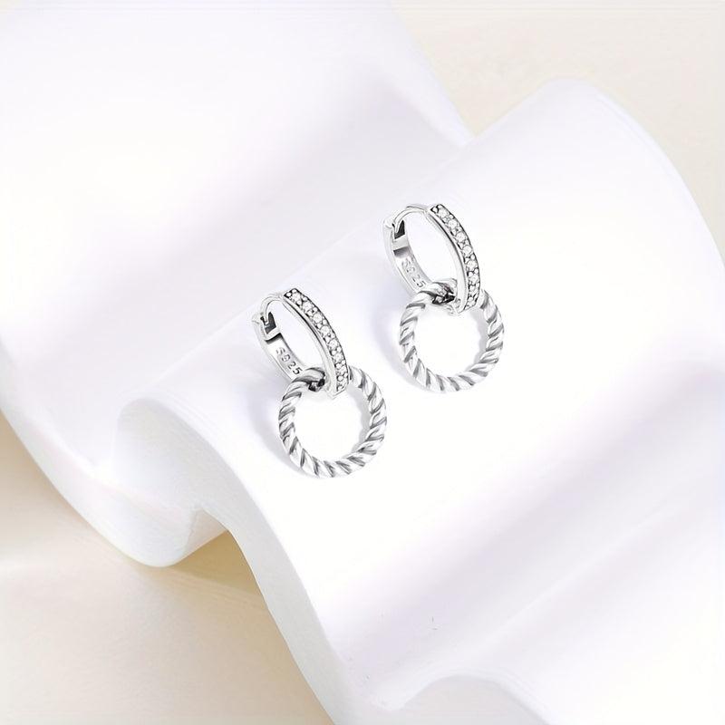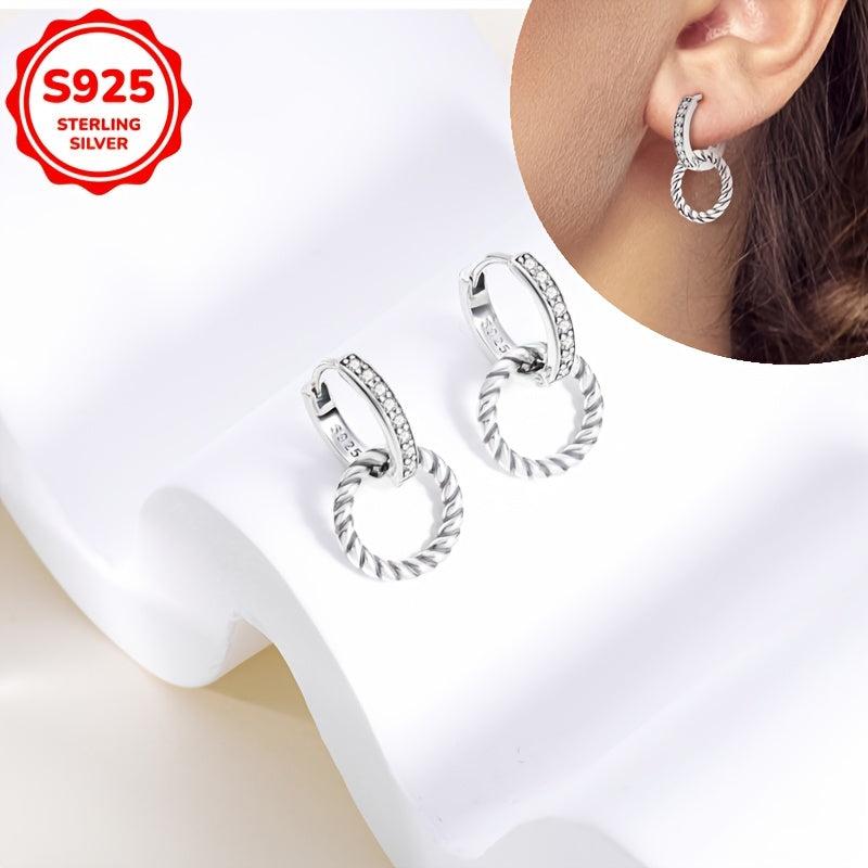925 Silver Double Hoop Twist Earrings for Women - Wedding Earrings