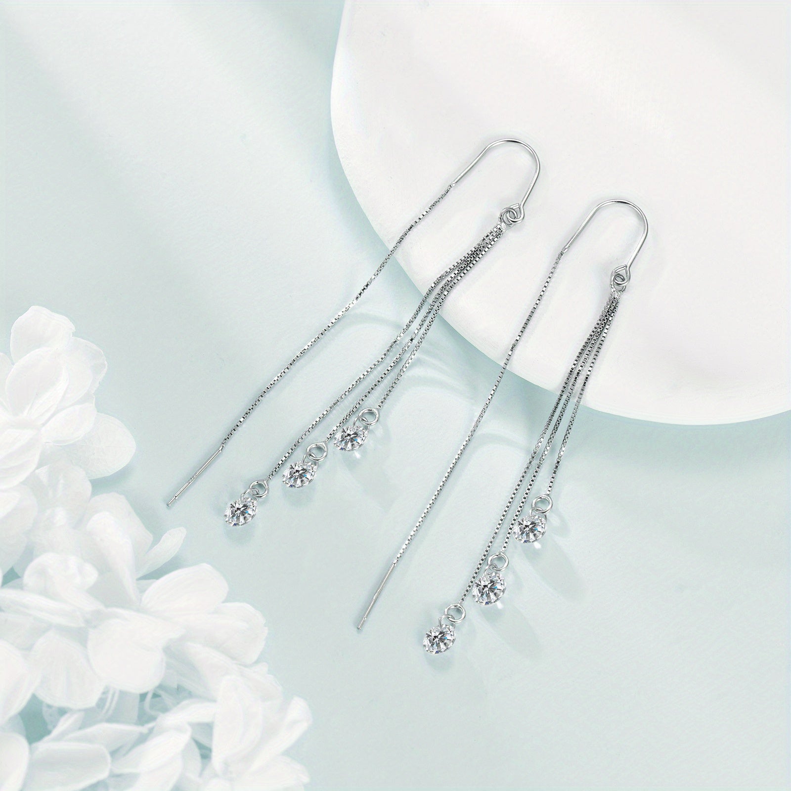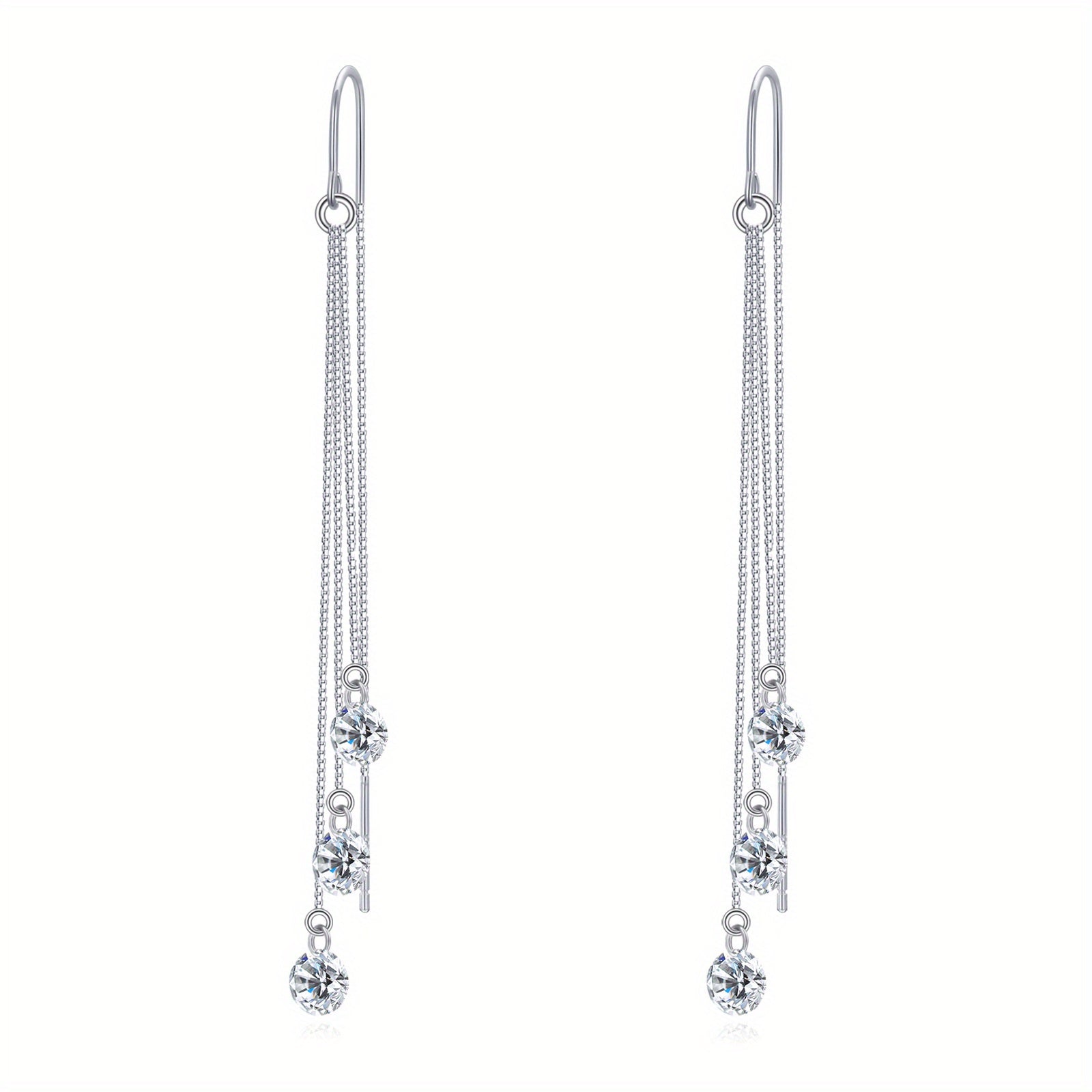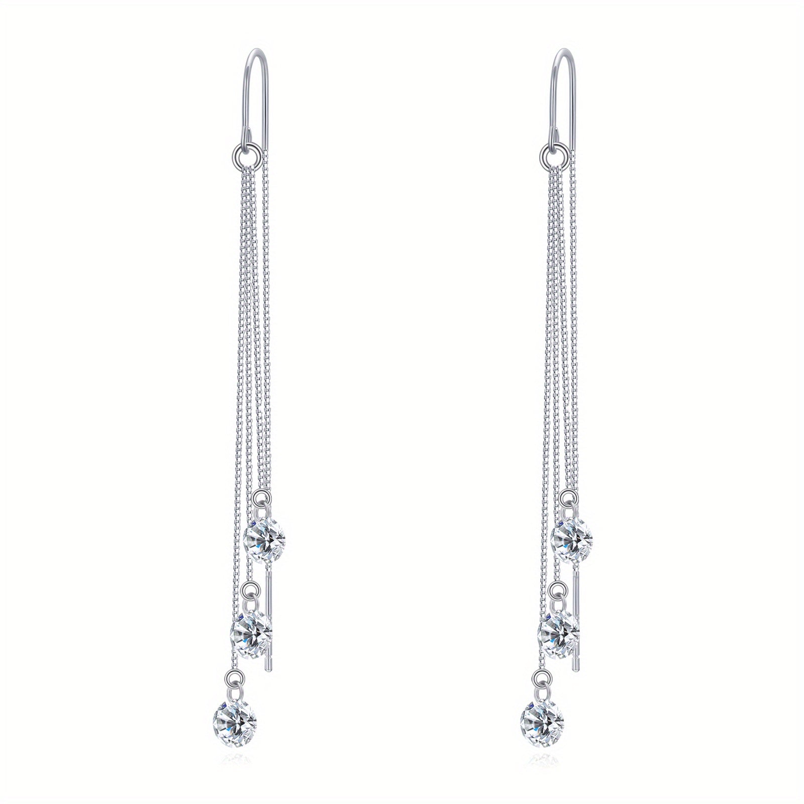 Elegant and stylish long drop threader earrings crafted from 925 sterling silver. These earrings feature a beaded dangle tassel design that adds a touch of sophistication to any outfit.