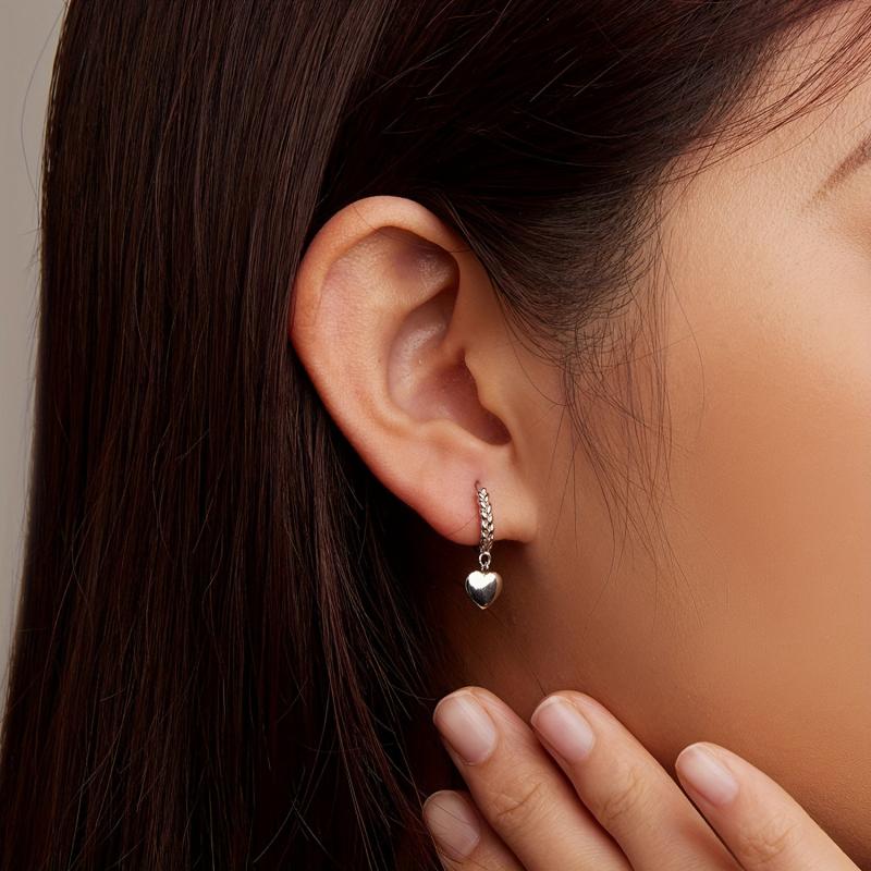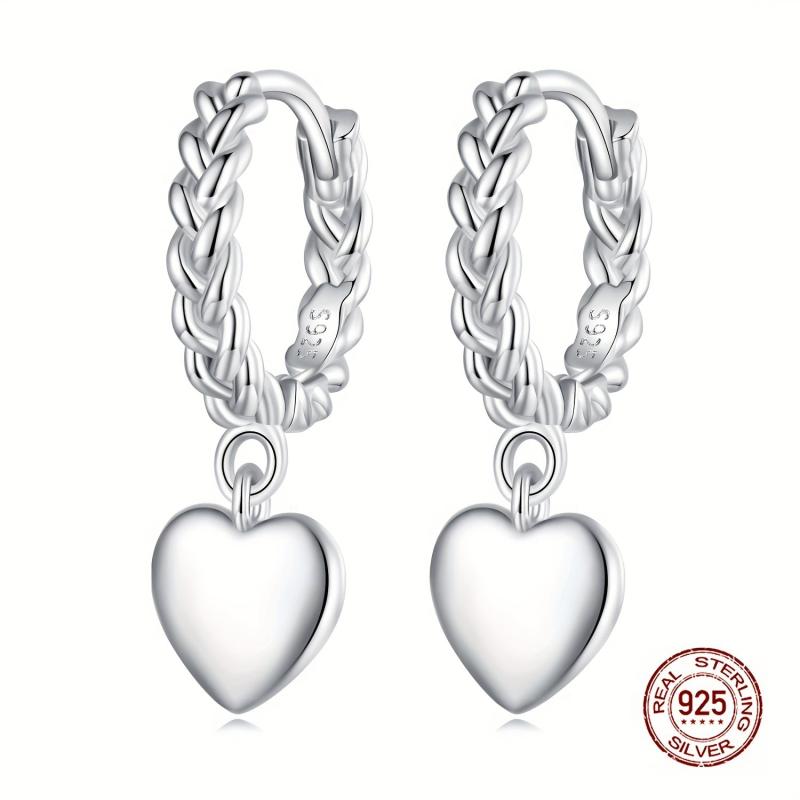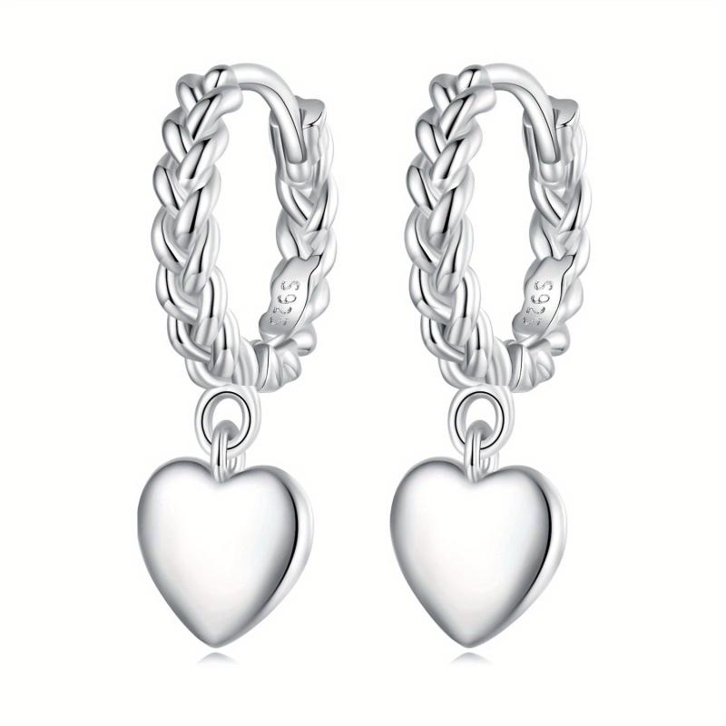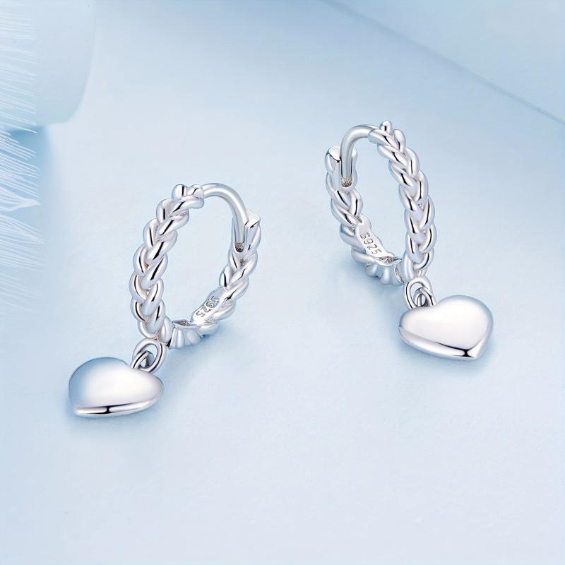 These hoop earrings feature heart pendant design, crafted from 925 sterling silver. Perfect gift for loved ones.