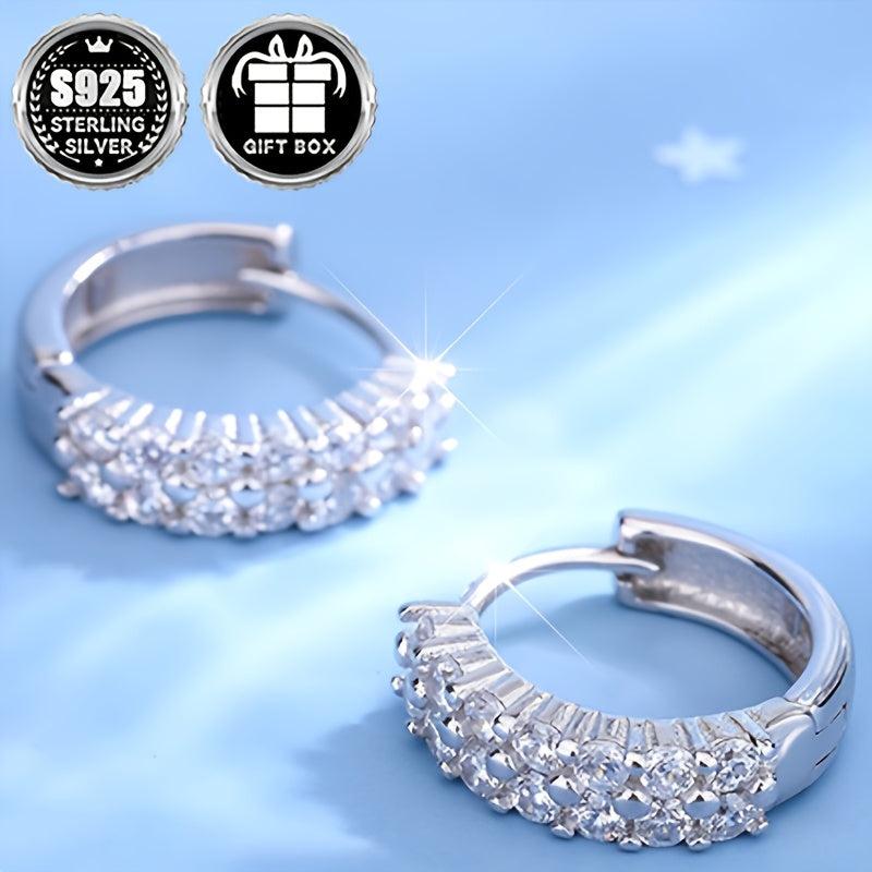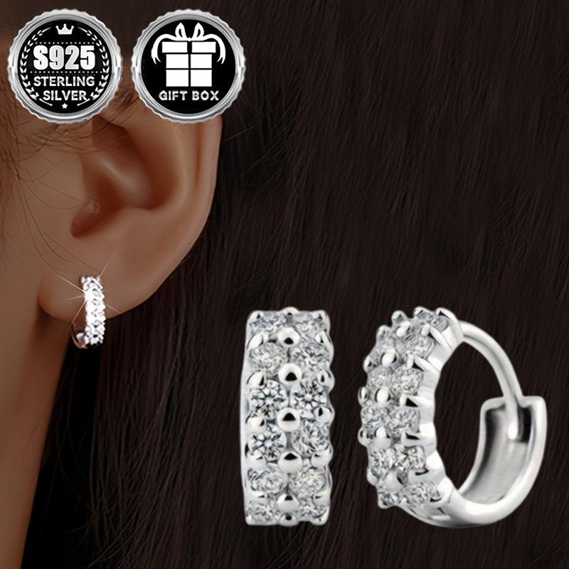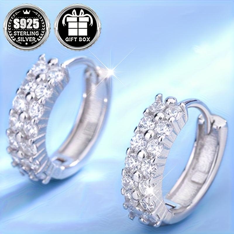Add a touch of glamour to your casual look with these sparkling sterling silver hoop earrings featuring high-quality cubic zirconia stones. Safe for sensitive ears.