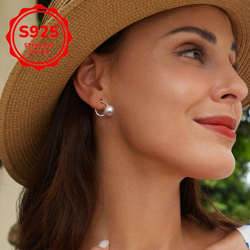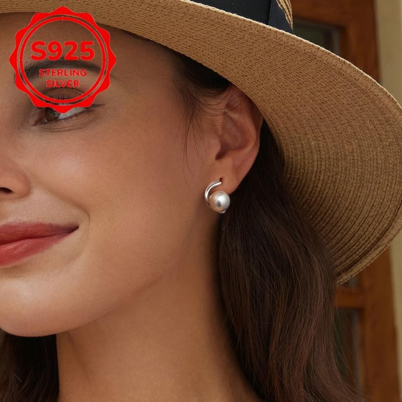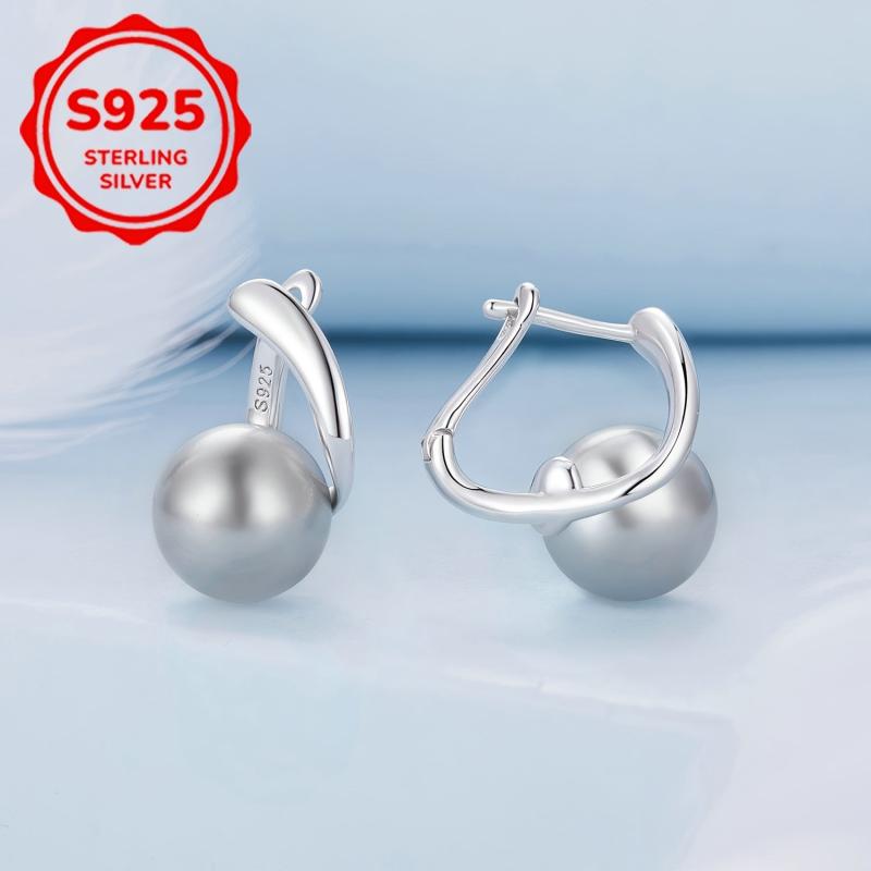 Elegant 925 Sterling Silver Hoop Earrings featuring lustrous stones. Perfect for daily wear or as a gift for special occasions.