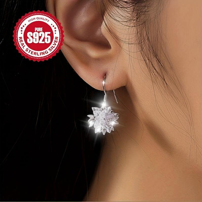 Elegant 925 sterling silver earrings with hypoallergenic zirconia in ice flower design. Perfekt für alltägliche Kleidung und Urlaubsoutfits.