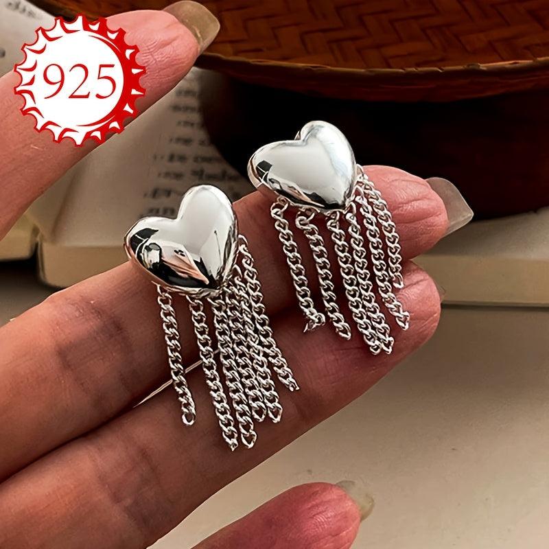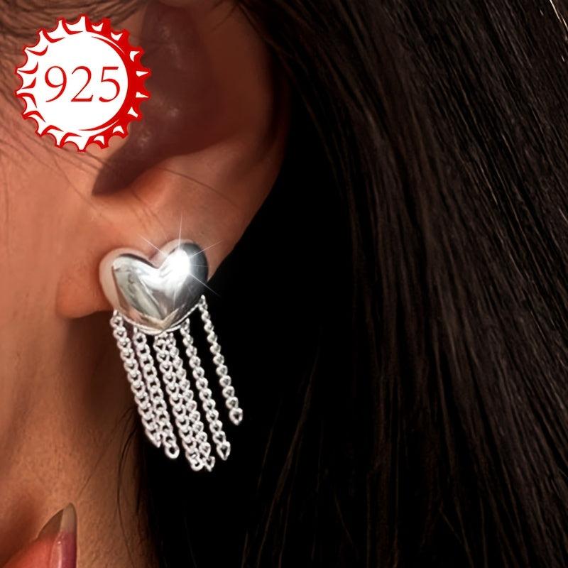 Add a touch of glamour to your look with these stylish 925 silver love tassel earrings. Perfect for those who love to make a statement with their accessories.