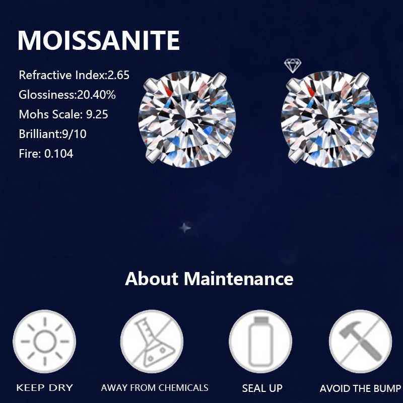 These elegant 925 silver moissanite earrings are perfect for daily wear and complement any outfit. Great for couples with various carat options.