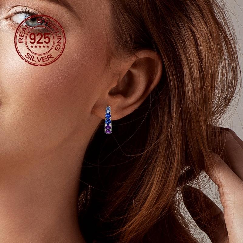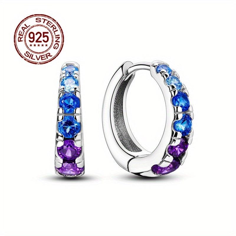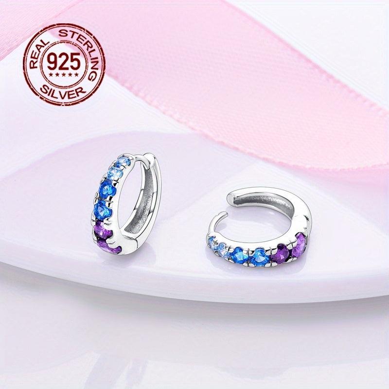 925 Silver Night Sky & Purple Gemstone Earrings Sparkling Zirconia Women's Gift