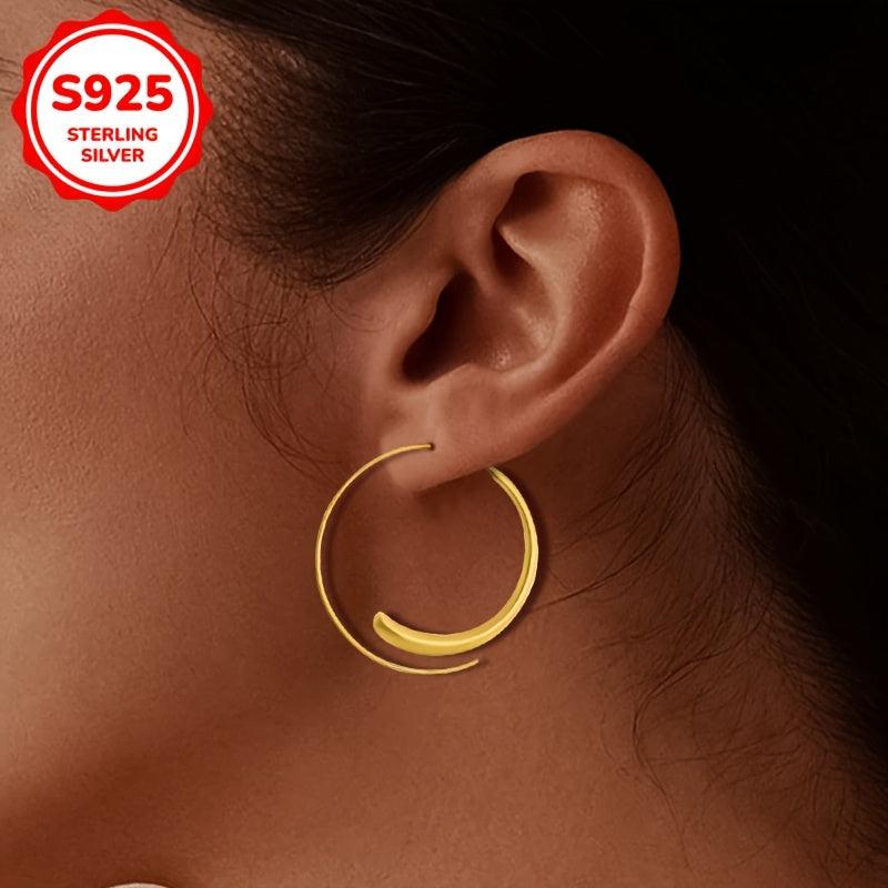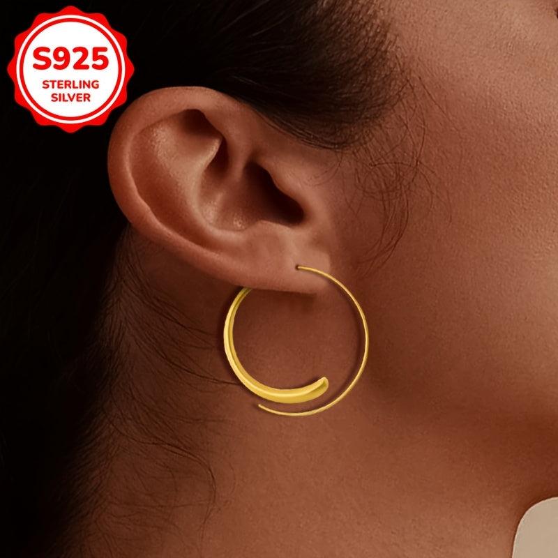 Add a touch of elegance to your outfit with these fashionable 925 silver hoop earrings featuring oversized irregular circles. Perfect for daily wear or holiday parties and ideal for gifting.