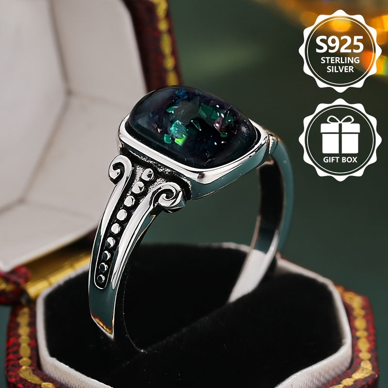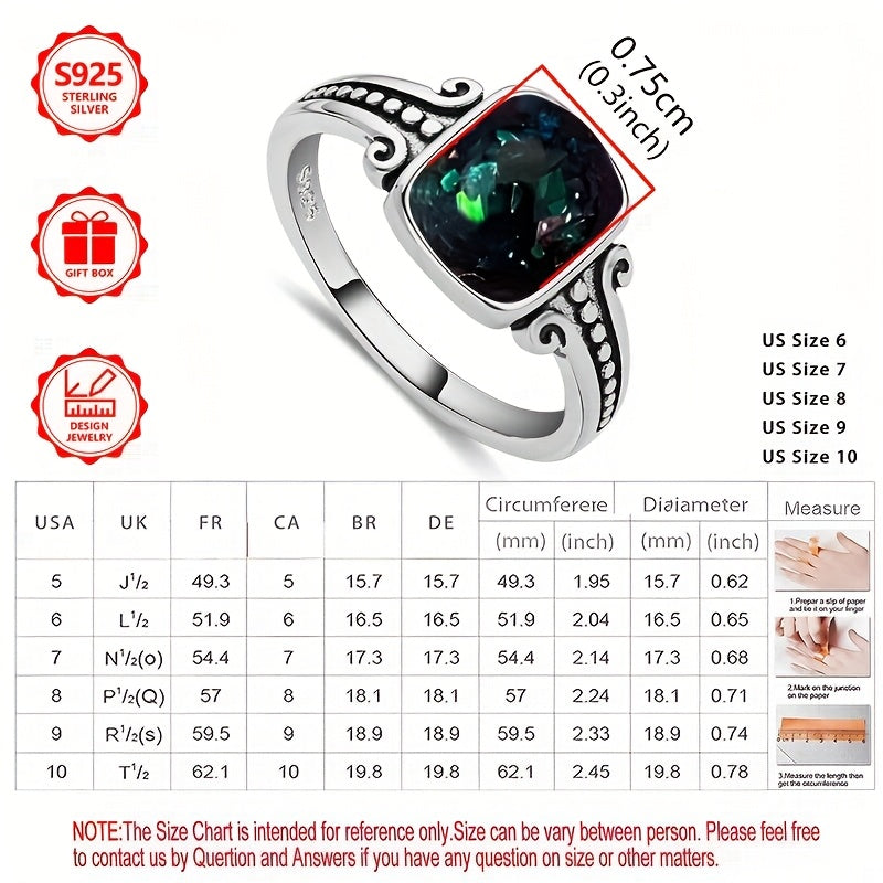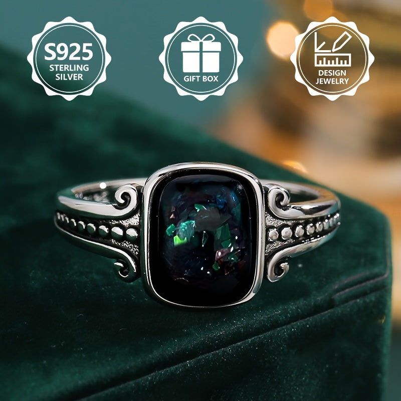 Elevate your style with this 925 sterling silver ring featuring a square synthetic opal. Perfect for daily wear, parties, and as a holiday gift for family and friends.