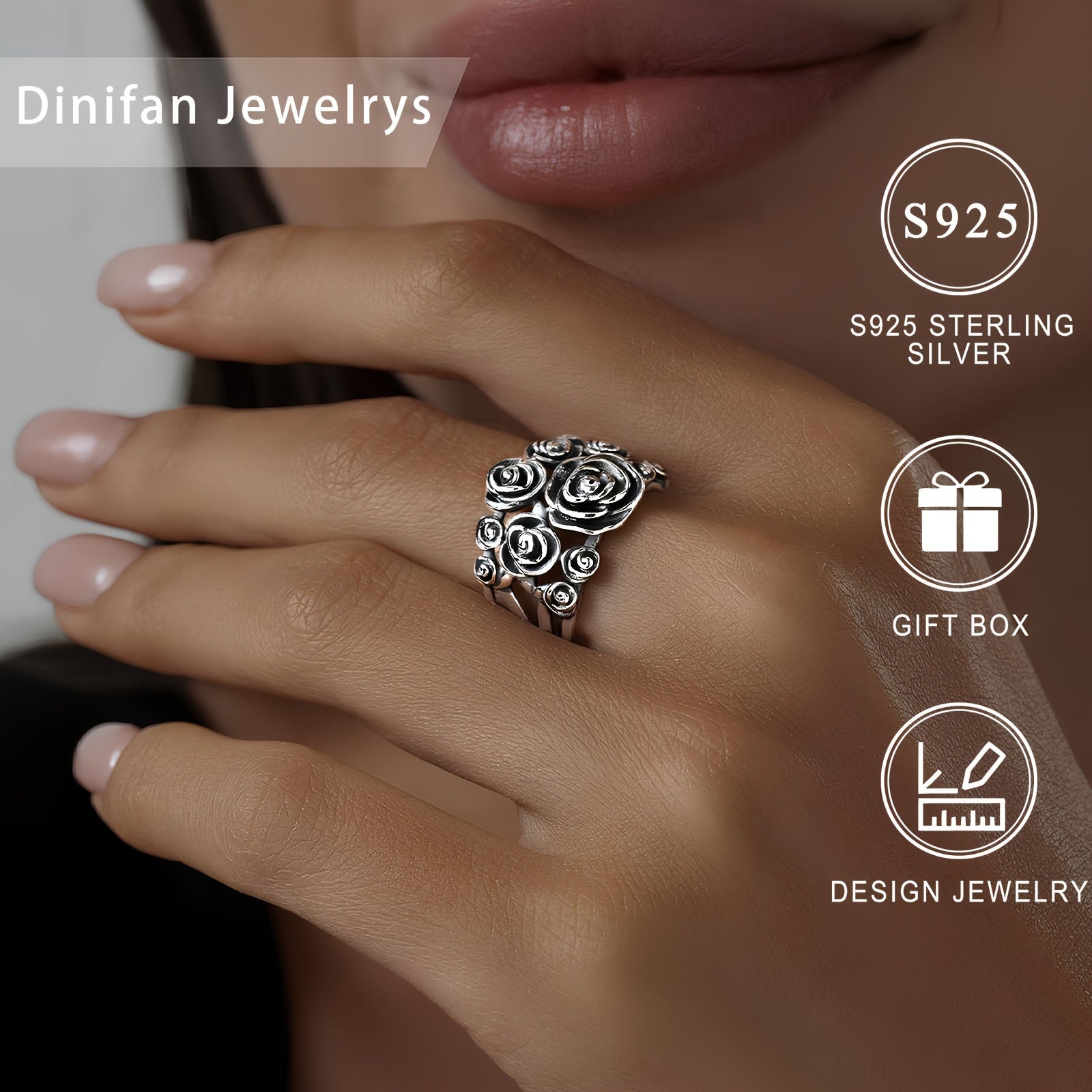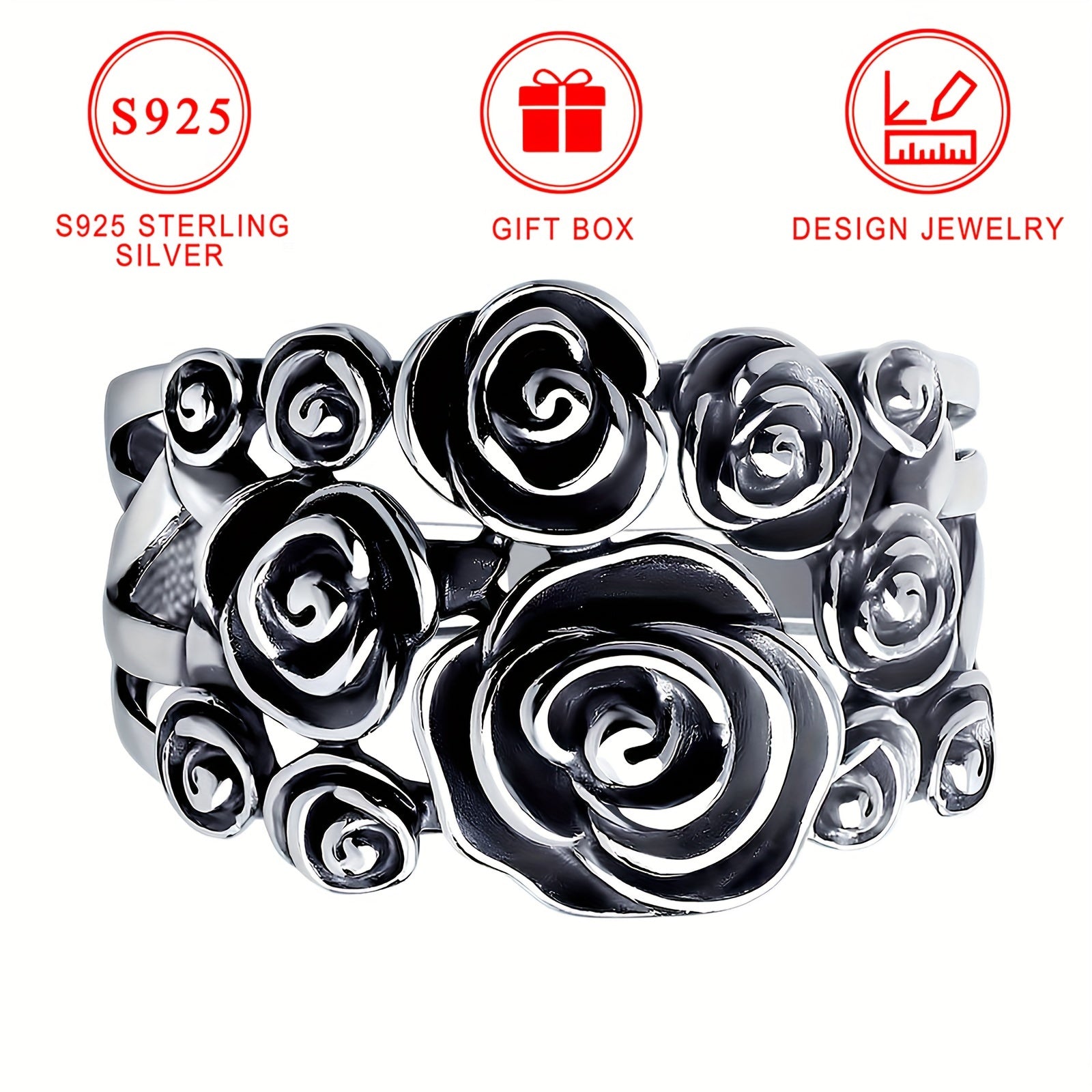 Elevate your style with this gorgeous 925 silver rose hollow out ring. It is hypoallergenic and nickel-free, perfect for women with sensitive skin. The intricate floral design adds a vintage touch, ideal for casual attire or party occasions.