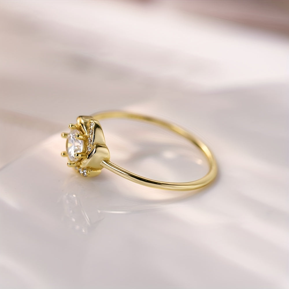 A stunning rose-shaped ring crafted from 925 silver and adorned with sparkling zirconia stones, weighing around 2.1 grams.