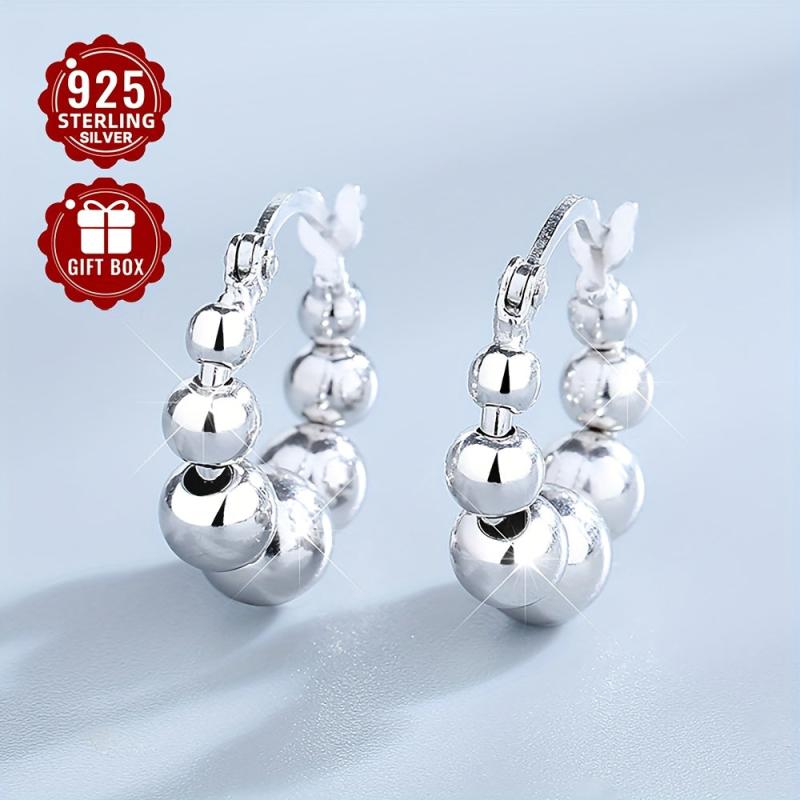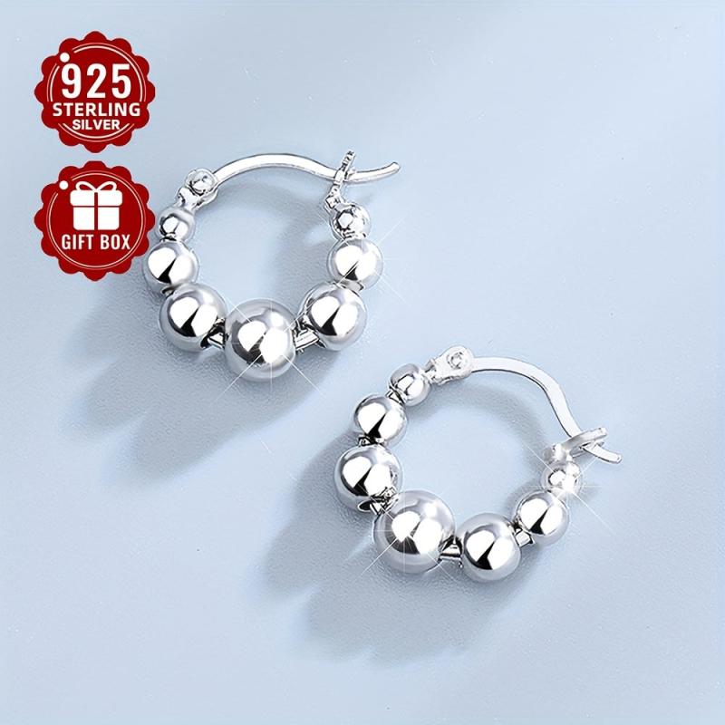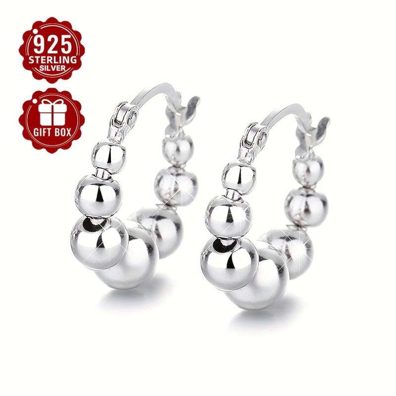 These classic round bead earrings are made of 925 sterling silver, weighing only 3.2g. They are perfect for daily wear, parties, and commuting.