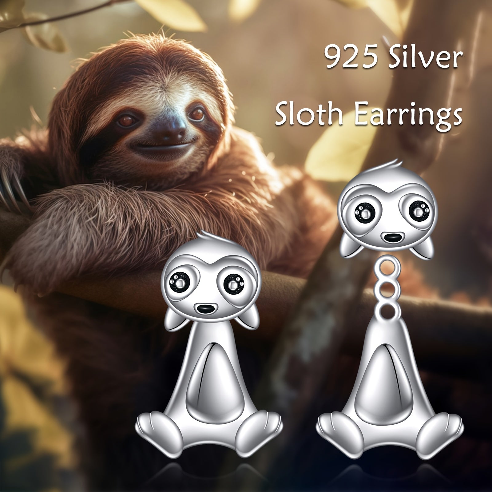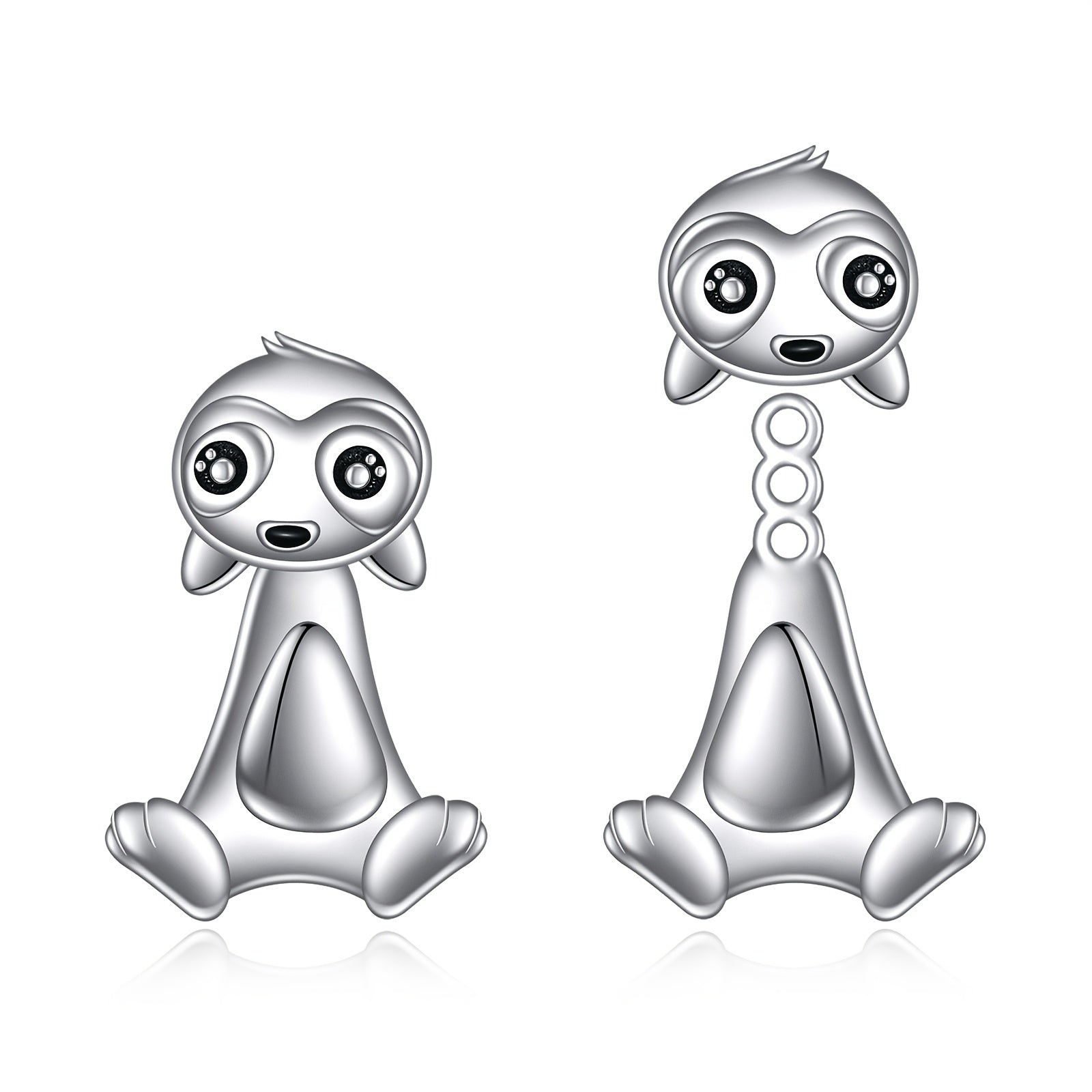 925 Silver Sloth Earrings Front Back Sloth Studs Jewellery