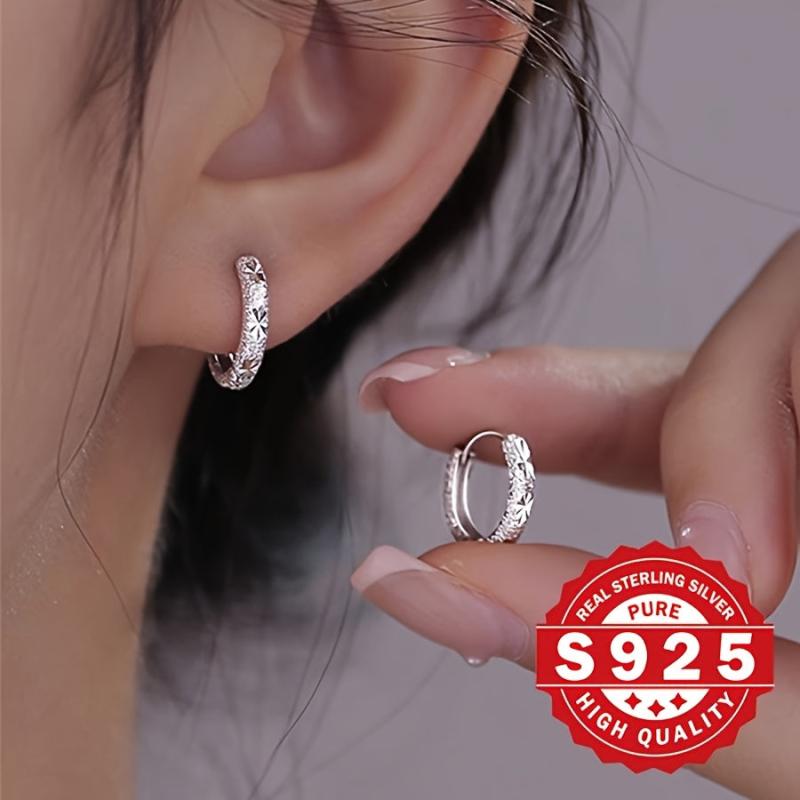 These hoop earrings are made of 925 sterling silver and feature a starry sky matte design. They are sparkling and graceful, making them perfect for daily wear or as a gift for a loved one. These earrings are ideal for women's accessories.