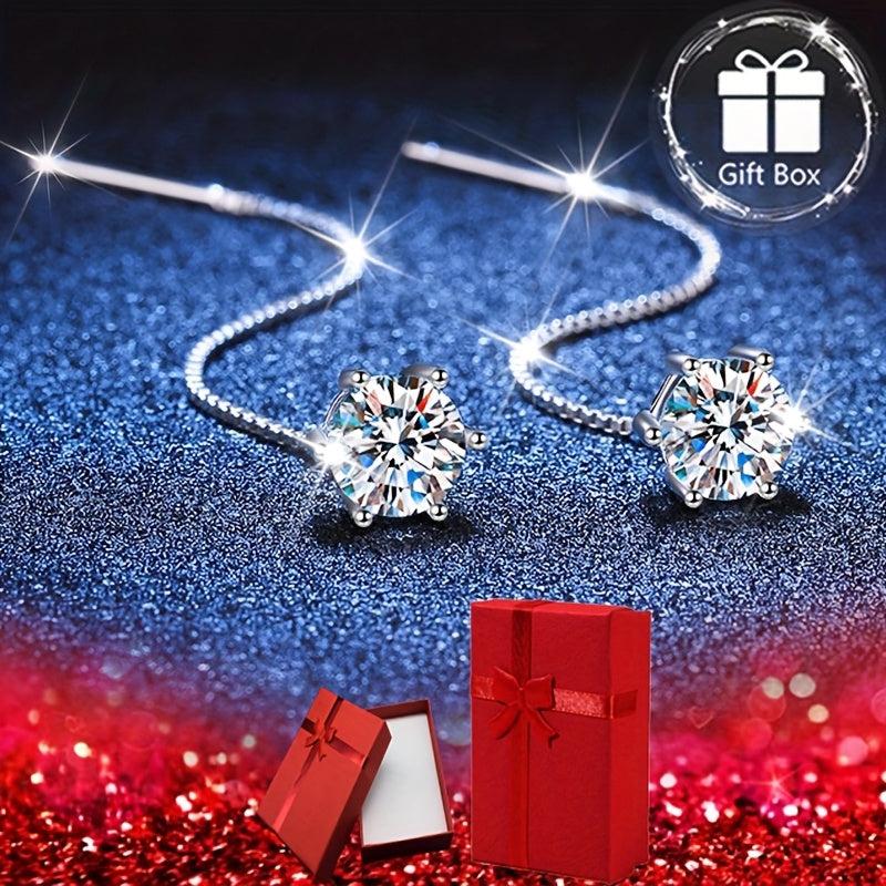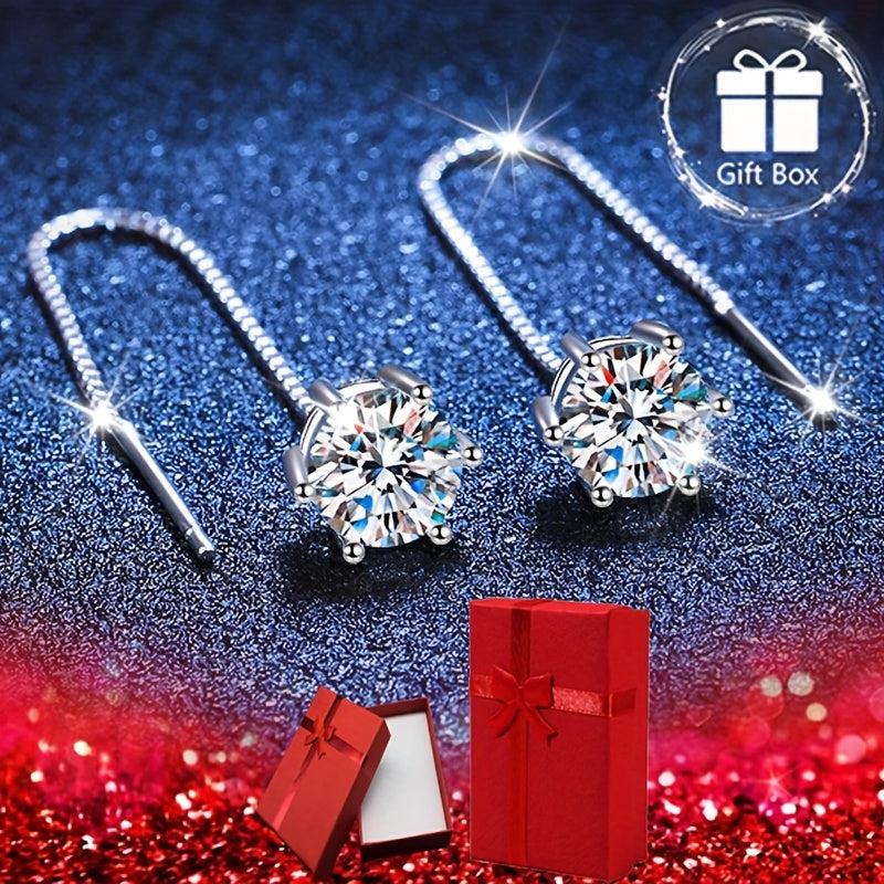 These stunning stud earrings are made of 925 sterling silver with sparkling cubic zirconia stones. Perfect for weddings, Valentine's Day, and special occasions.