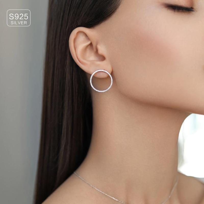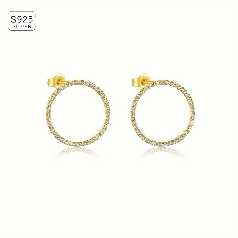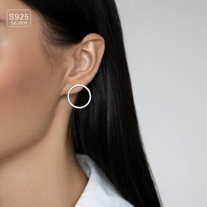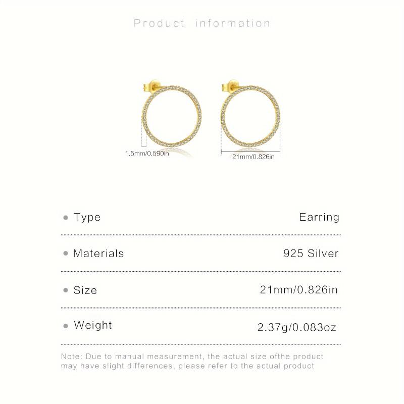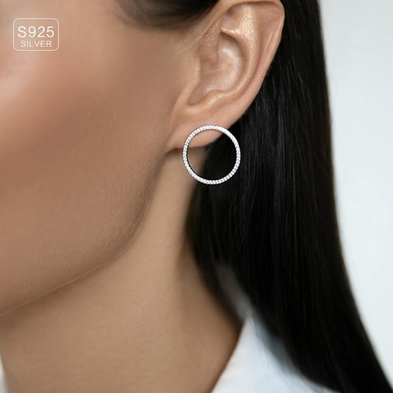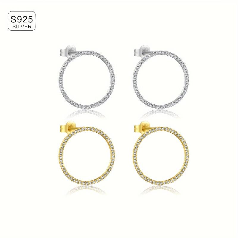 Add sparkle to your style with this pair of 37g round 925 silver earrings adorned with synthetic Zirconia. These hollow earrings are suitable for both daily wear and parties.