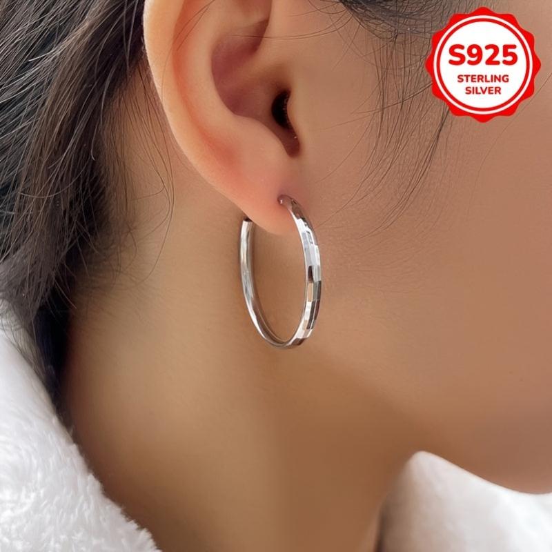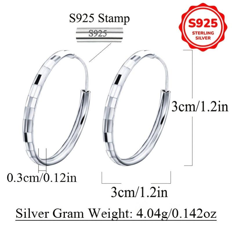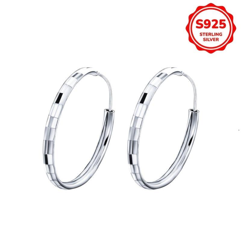 Elegant and sexy, these silver hoop earrings feature a square pattern for a unique touch. Hypoallergenic material perfect for daily wear or parties.