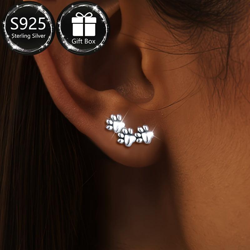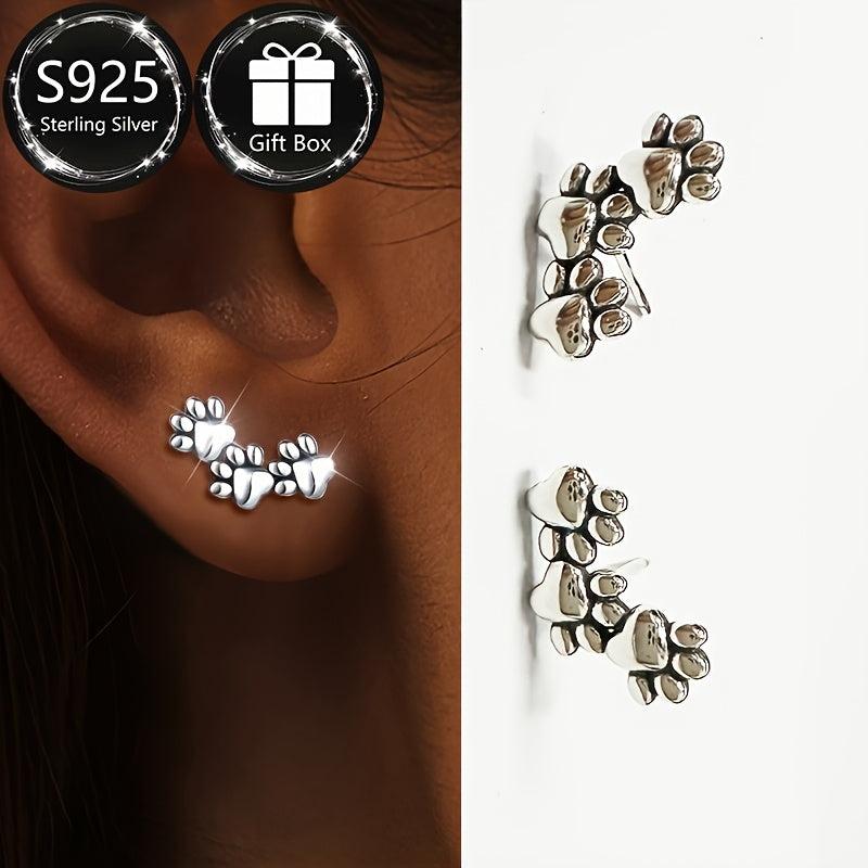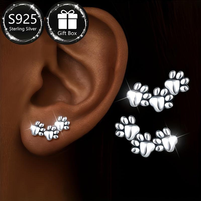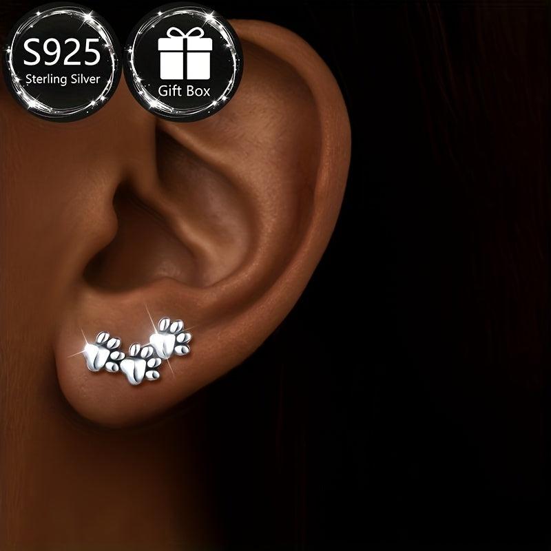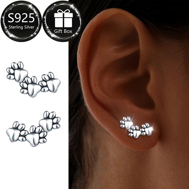 925 Sterling Silver Animal Paw Earrings Dog Cat Hypoallergenic Jewelry