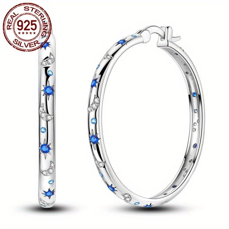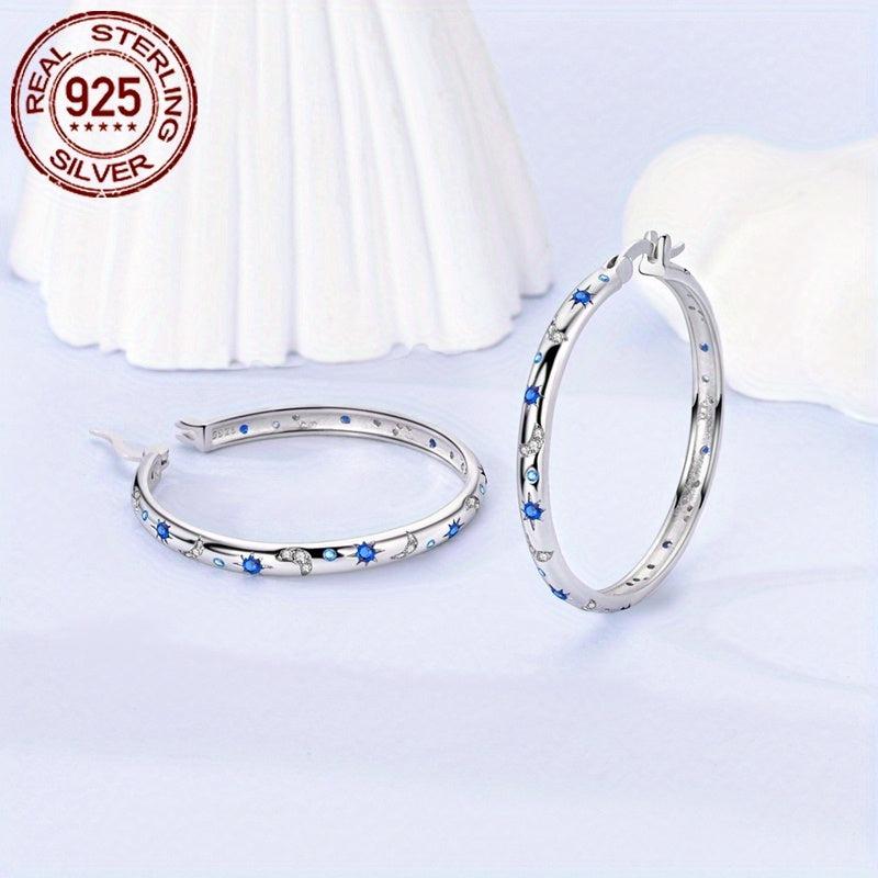 Add a touch of elegance with these stunning 925 sterling silver earrings featuring a bright starry night design. The hypoallergenic earrings are adorned with sparkly synthetic zirconia, making them the perfect delicate gift for a wedding or any special occasion.