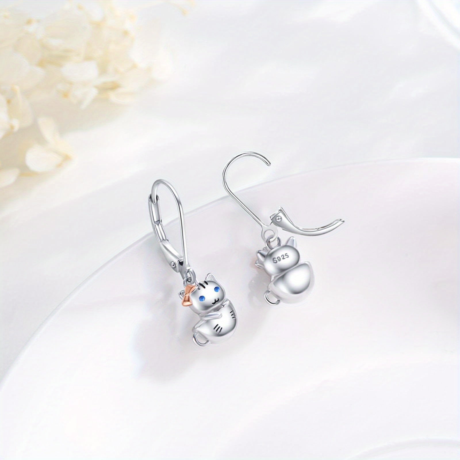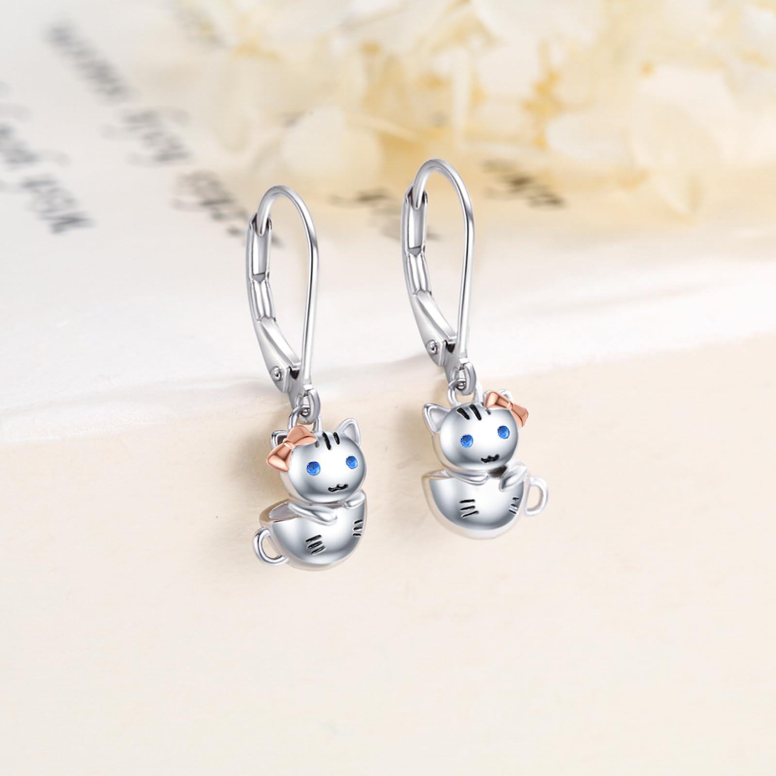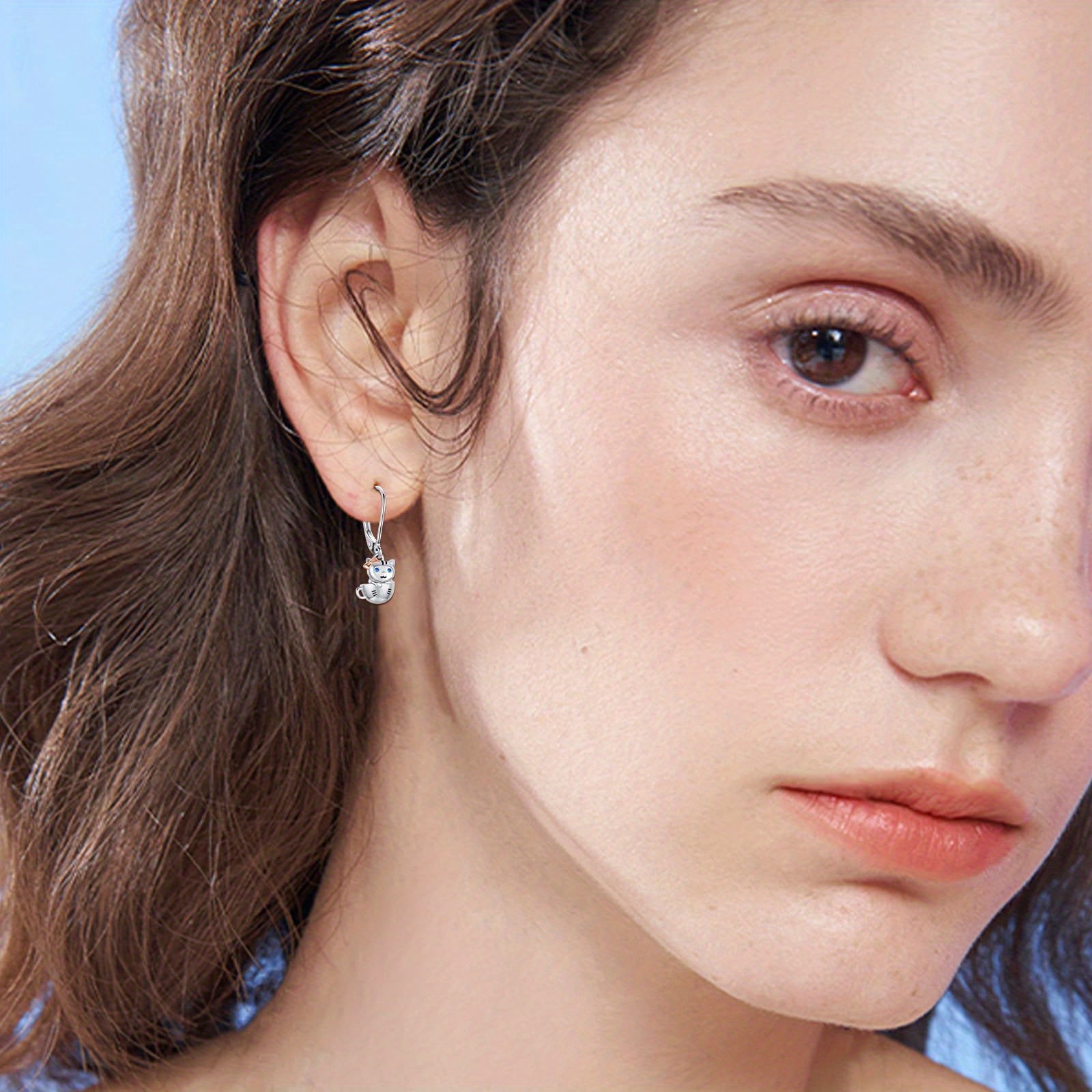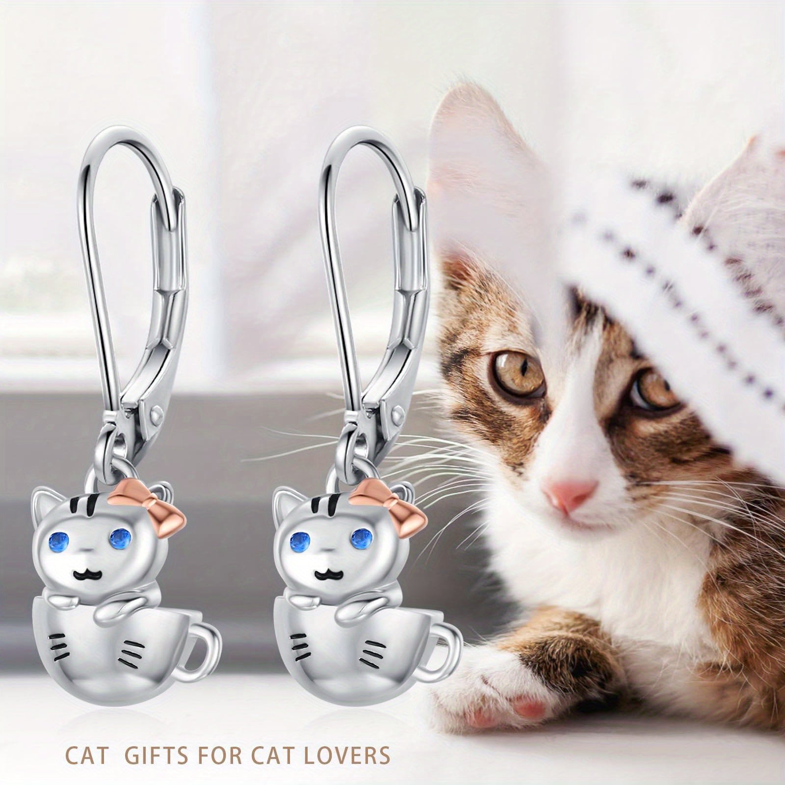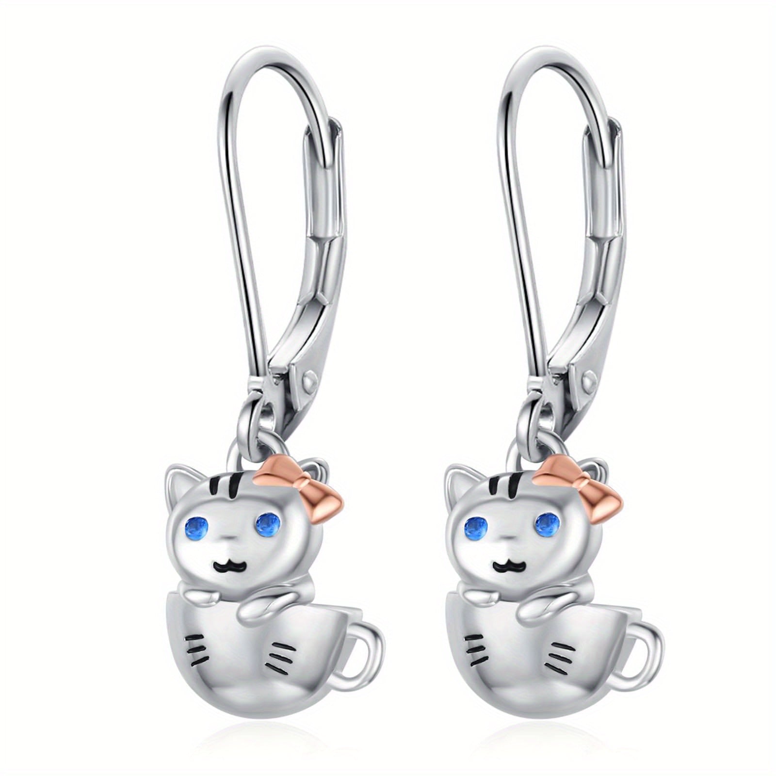 925 Sterling Silver Cat Drop Earrings Teacup Cat Jewellery for Women