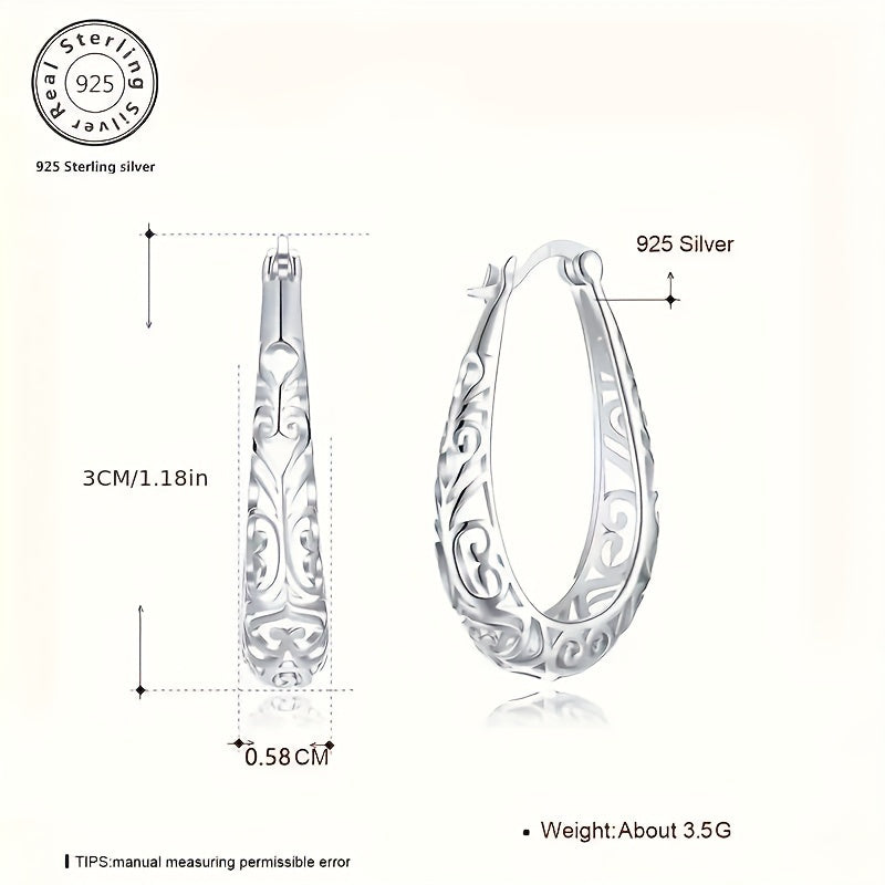 These vintage style earrings are made of 925 sterling silver, featuring delicate filigree cutout design. Lightweight and hypoallergenic, these earrings are perfect for any occasion.