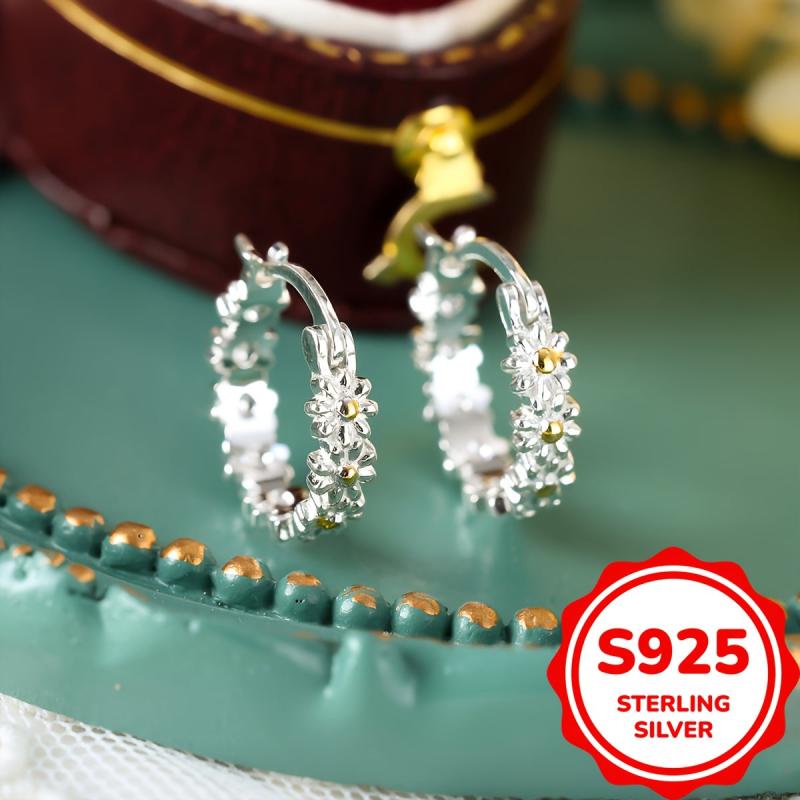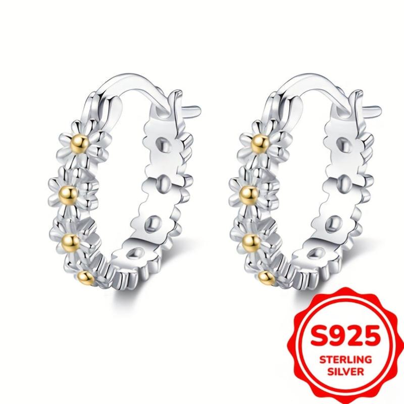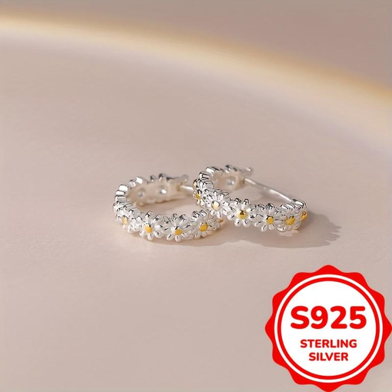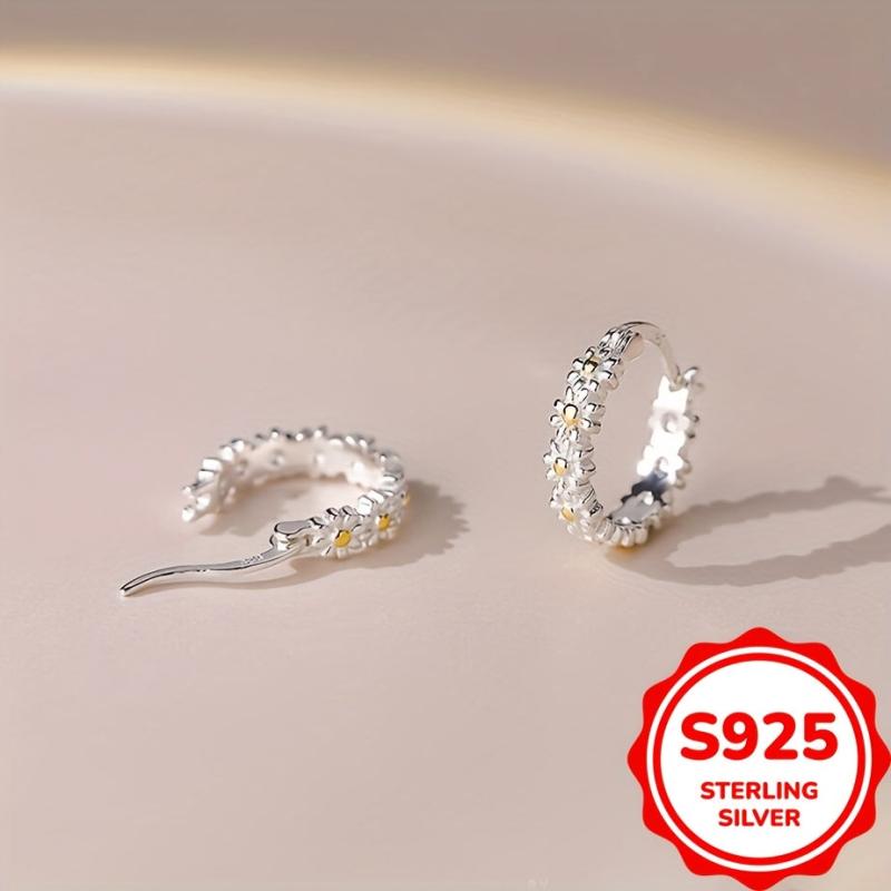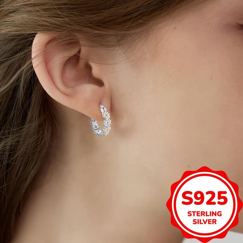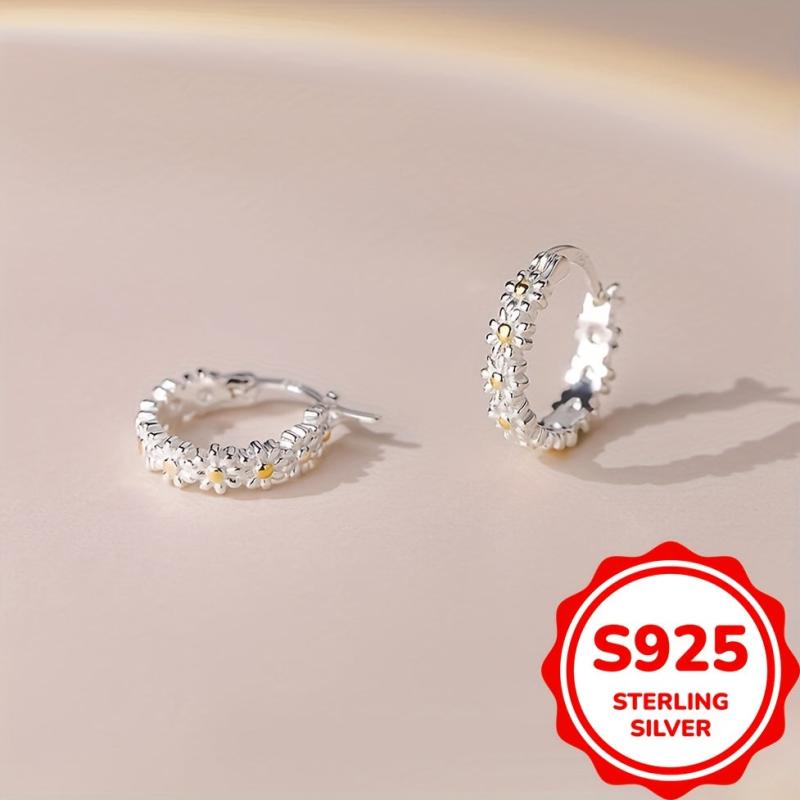 These adorable huggie hoop earrings feature daisy design, crafted with 925 sterling silver. Perfect for daily wear or as a gift for birthdays or Christmas.